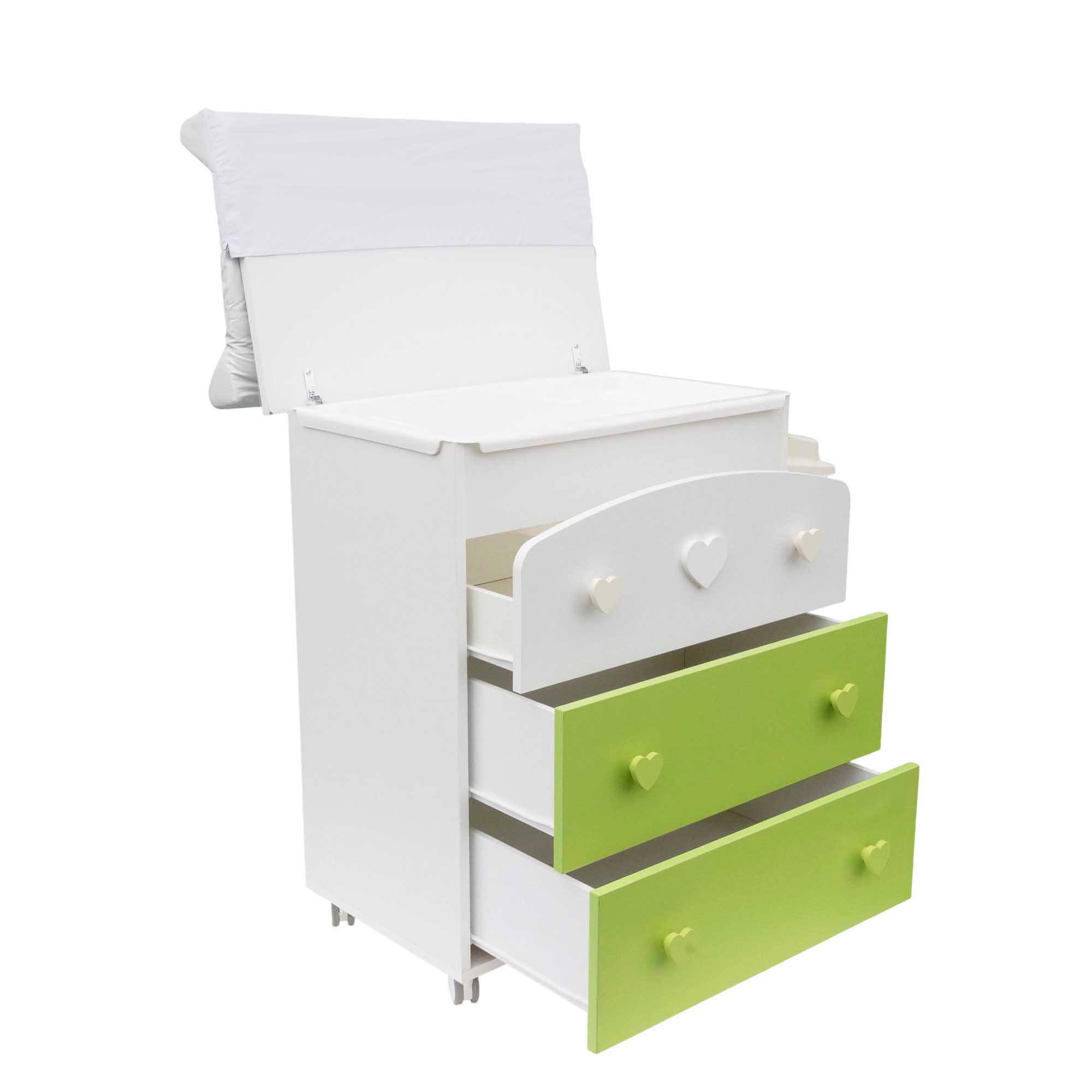 Baby Commode Verdi, BabyDreams, Drawers, Changing Mattress and Bath Tube Included, 76x47x92 cm, White-Green