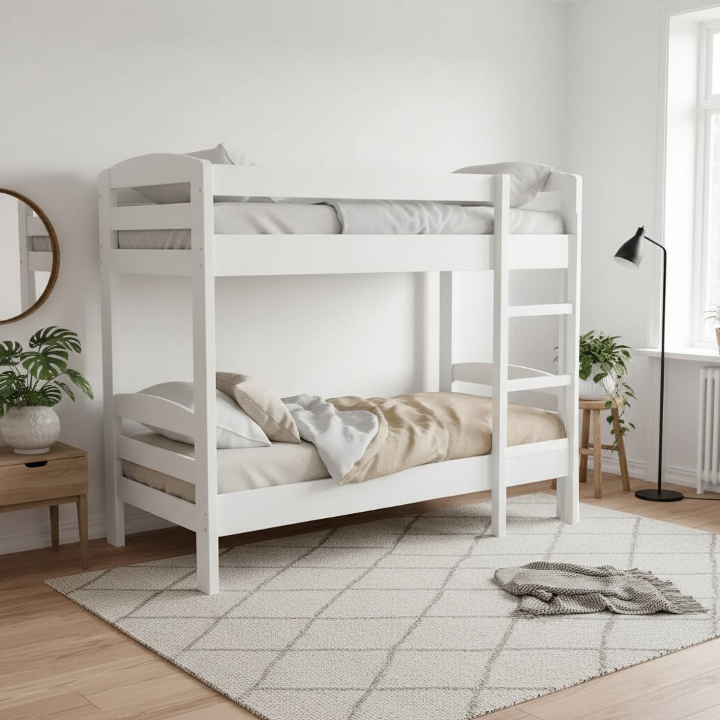 Perfect for various settings, this bunk bed can be placed in home bedrooms, weekend houses, and guest houses. Its adaptable design makes it an excellent choice for maximizing space in smaller rooms, providing additional sleeping arrangements without compromising on comfort or style. The bunk bed's aesthetic appeal and practical functionality make it a welcome addition to any living space.