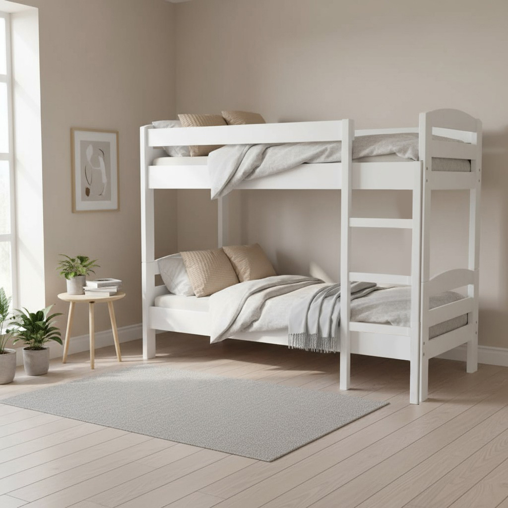 Our wooden bunk bed, 90x200 cm, is crafted from high-quality solid wood, ensuring unmatched durability and strength. Designed to stand the test of time, this bunk bed is a long-lasting investment that will remain sturdy and reliable for years to come. The robust construction guarantees a stable and secure sleeping environment, making it a perfect choice for households seeking both functionality and longevity.