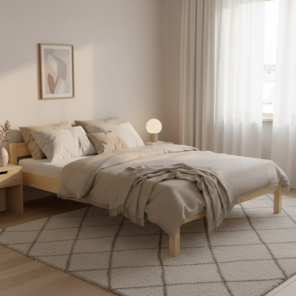 Whether you're furnishing a city apartment, a cozy weekend house, or a serene forest retreat, the Sally bed fits perfectly into any type of bedroom setting. Its adaptable style enhances the ambiance of various living spaces.