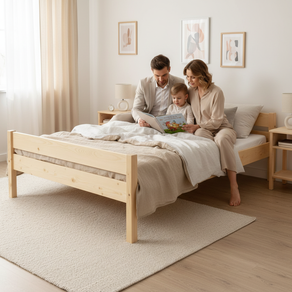 Whether you're furnishing a city apartment, a cozy weekend house, or a serene forest retreat, the Sally bed fits perfectly into any type of bedroom setting. Its adaptable style enhances the ambiance of various living spaces.