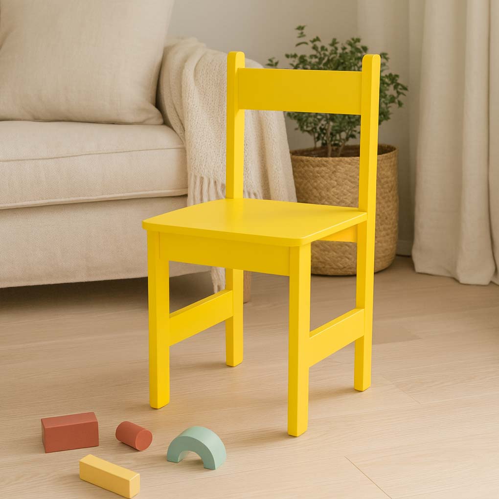 Add a pop of color and personality to your child's room with our vibrant wooden chair. Designed to attract attention and spark imagination, it's sure to become a favorite spot for play, study, and relaxation.