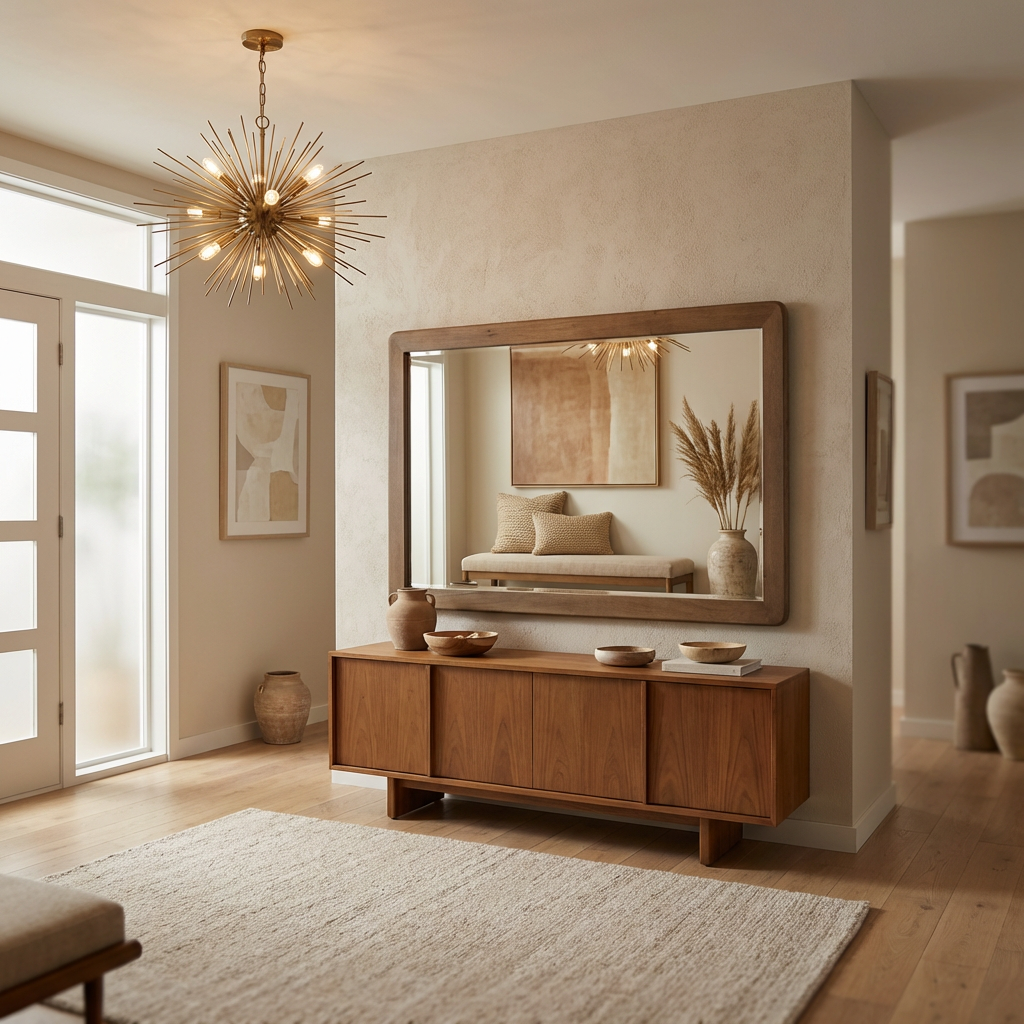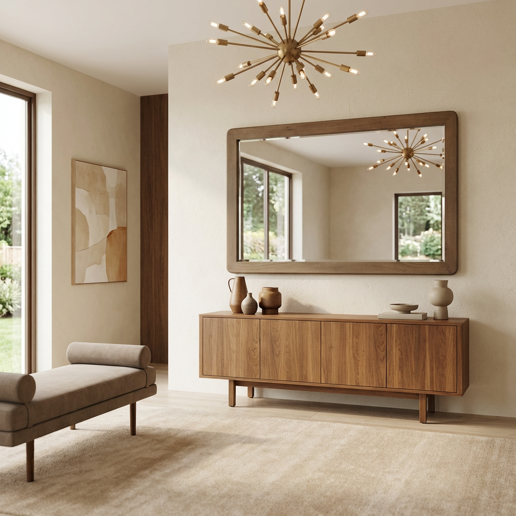 Oglinda din Mykonos Collection, Transilvan este alegerea perfectă pentru cei care caută un decor elegant, natural și funcțional, capabil să transforme orice spațiu într-un ambient luminos și rafinat.