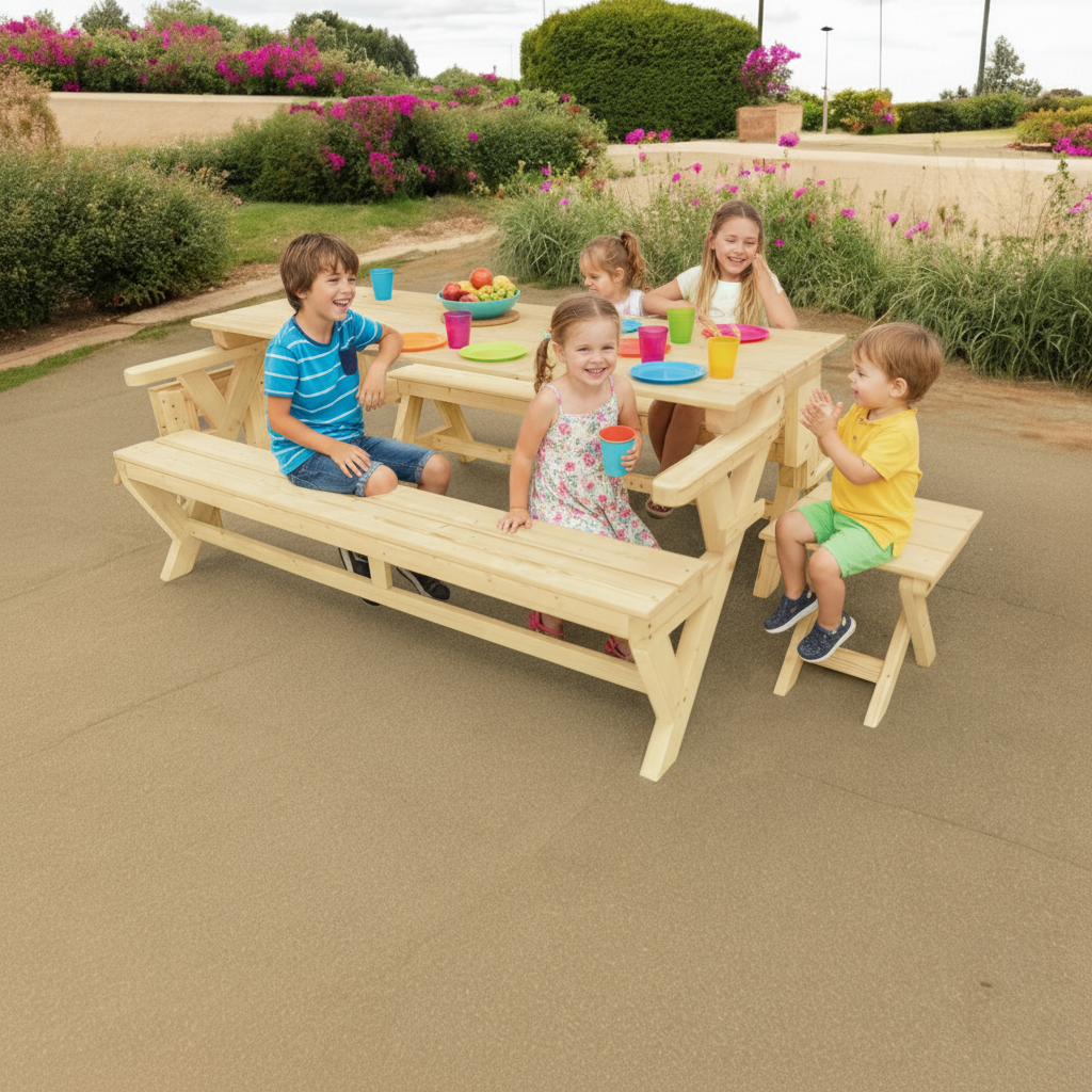 Această bancă este alegerea perfectă pentru orice eveniment outdoor. Puteți să o transformați cu ușurință într-o masă cu bănci pentru 6 persoane cu două scaune sau, dacă nu aveți oaspeți și doriți să admirați frumusețea grădinii dvs. într-un loc confortabil, o puteți transforma într-o bancă pentru 4 persoane.