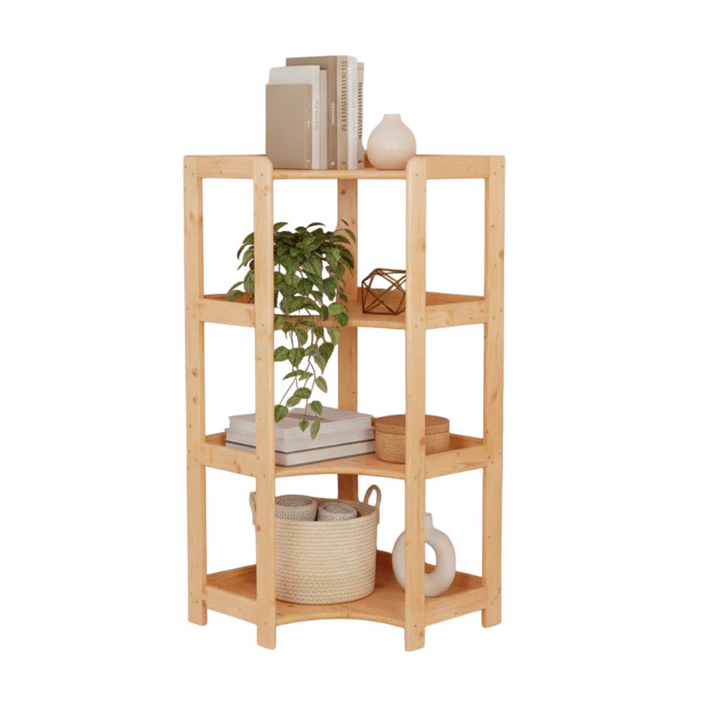 Maximize space in your home with our essential corner shelf, providing a stylish solution for storing books, flowers, and decorations. Designed to fit snugly in any corner, it optimizes space utilization in your living room, bedroom, bathroom, or entrance area.