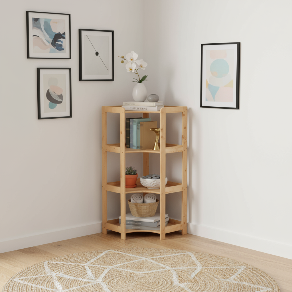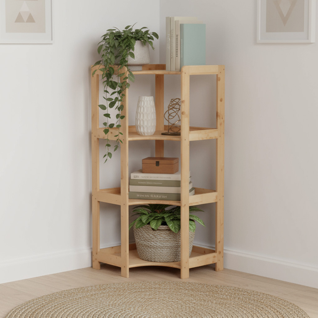 Maximize space in your home with our essential corner shelf, providing a stylish solution for storing books, flowers, and decorations. Designed to fit snugly in any corner, it optimizes space utilization in your living room, bedroom, bathroom, or entrance area.