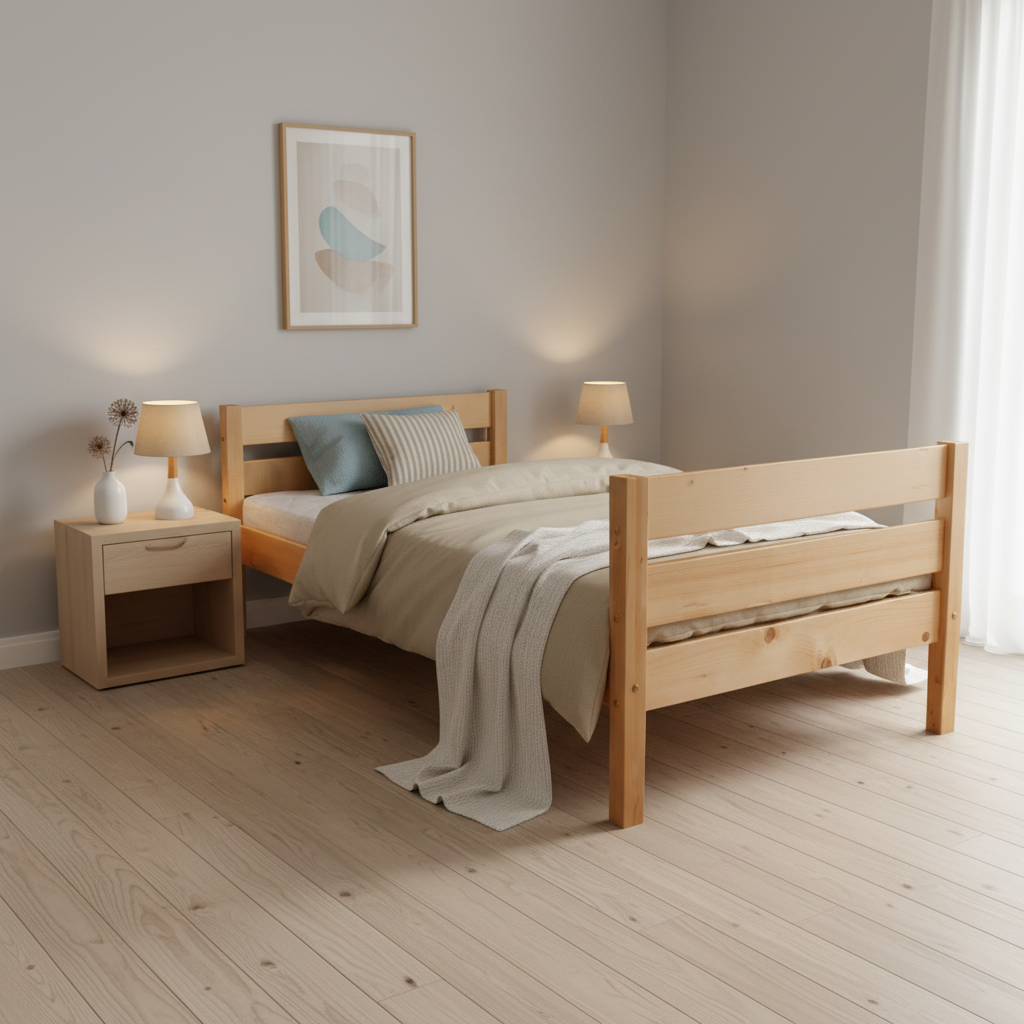 Transform your bedroom with the Sally wooden bed—where style, comfort, and affordability meet.
