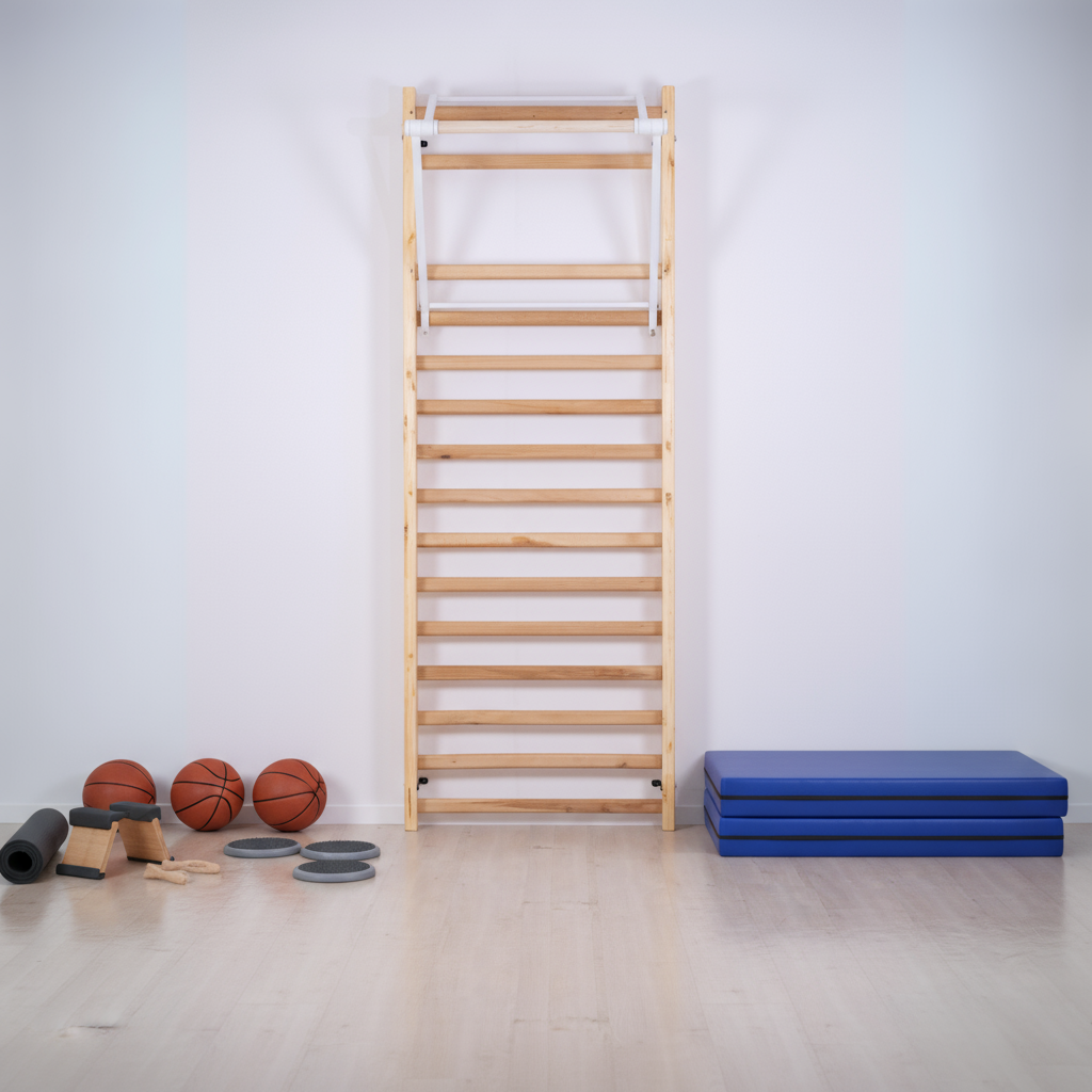 Pontossággal megmunkálva, az oldalsó részek rétegelt lucfenyő elemeket tartalmaznak, amelyek gondosan csiszoltak és lakkozottak a tökéletesség érdekében. A keresztlécek ellenálló bükkfából készültek, amelyek biztosítják a tartósságot és stabilitást az edzések során.