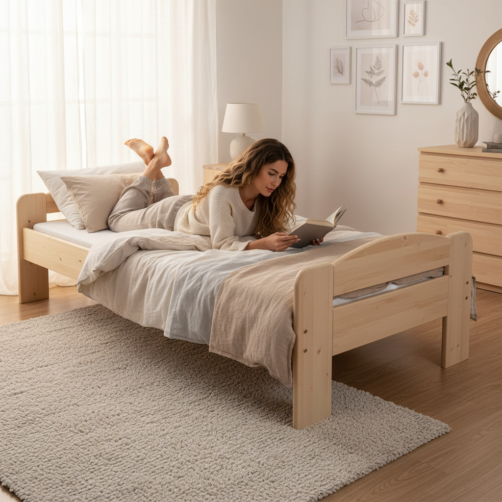 90x200 cm-es mérete elegendő alvóhelyet biztosít. Ez a méret ideális különböző szoba méretekhez, legyen szó hálószobáról, gyermekszobáról, hétvégi házról vagy vendégházból.