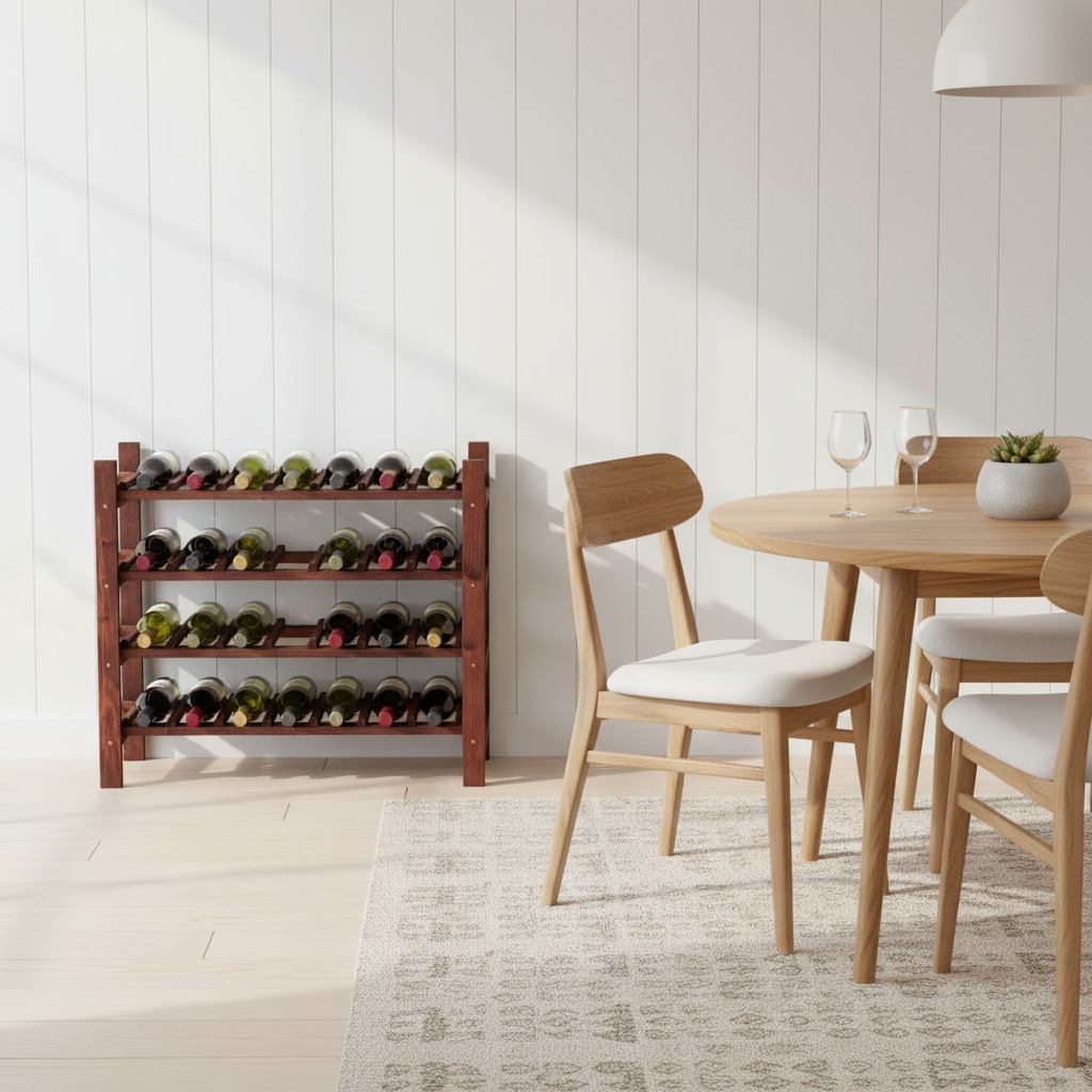 A fenyőfa népszerű választás ilyen típusú borpolcokhoz a természetes szépsége és tartóssága miatt.