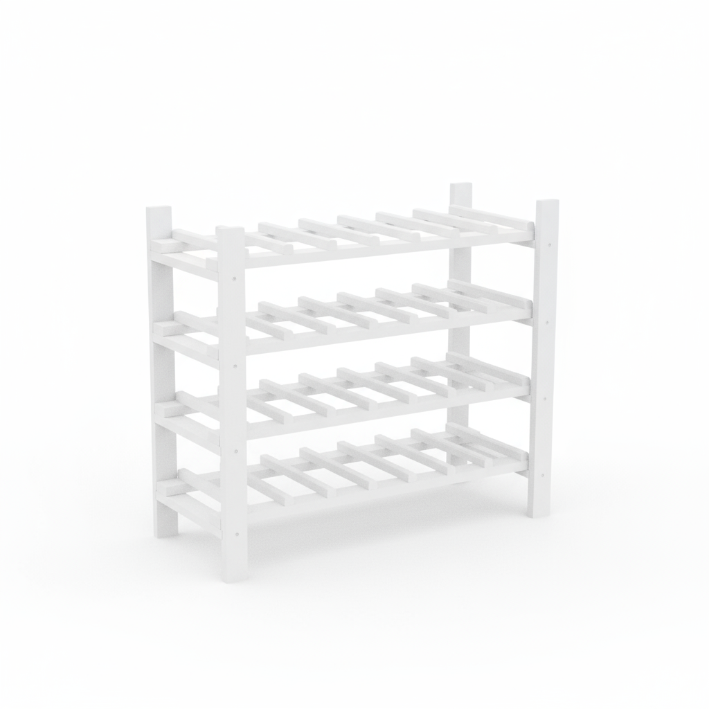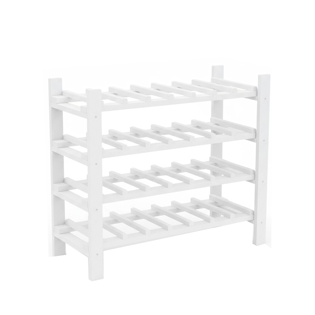 A fenyőfából készült borosüveg-tartó 4 polccal rendelkezik és 28 palack tárolására alkalas.