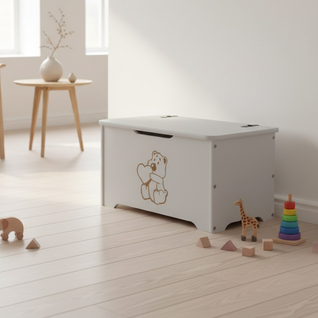 Emelje a gyerekszoba eleganciáját játékos ládánkkal amelyet elbűvölő részletek, mint például egy kedves macis motívum díszít a oldalán - hozzáadva egy kis játékosságot minden esti meséhez.
