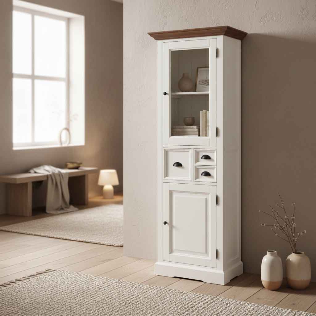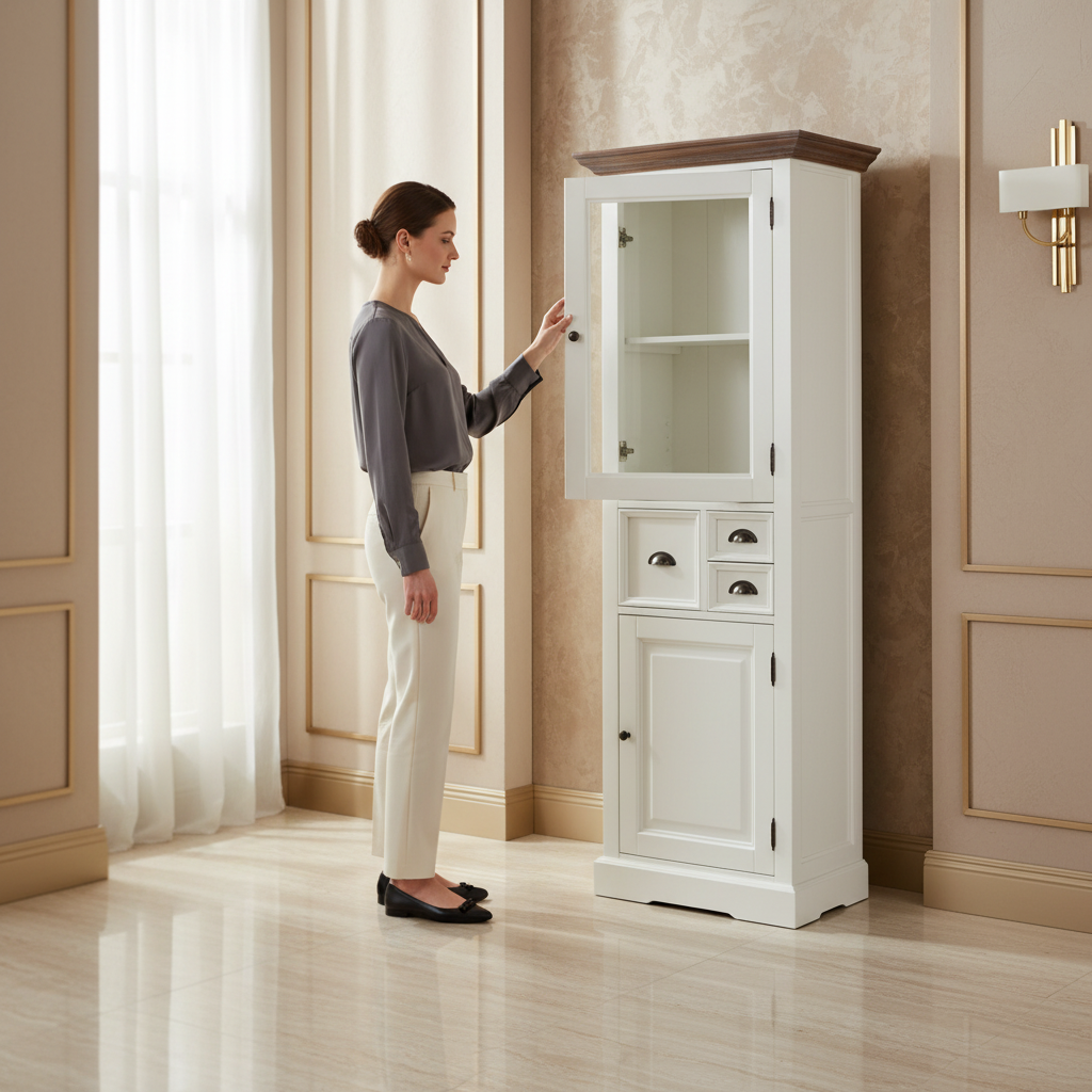 Bufetul cu vitrină Monaco Collection este conceput pentru a maximiza spațiul de depozitare pe verticală, oferind funcționalitate ridicată într-un format compact.