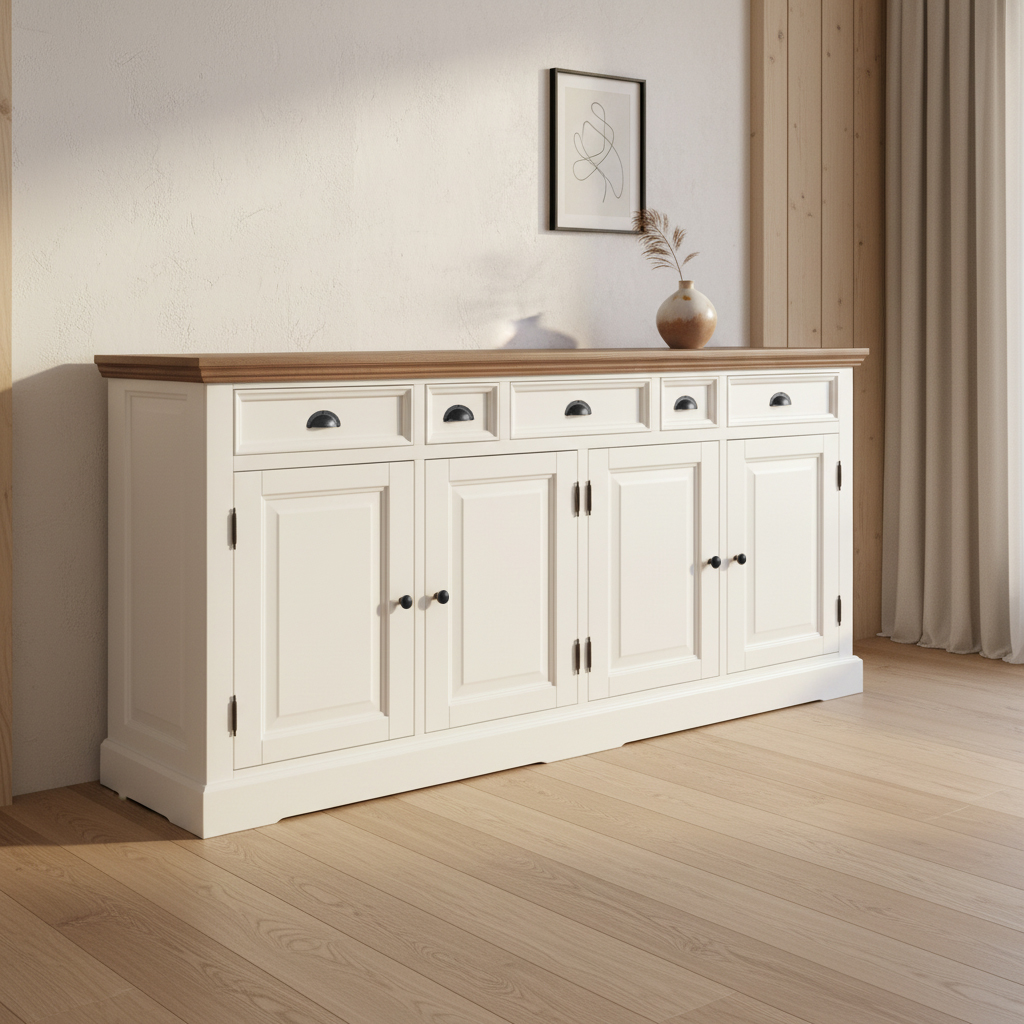 Bufet din lemn masiv și MDF – spațiu generos și eleganță pentru living sau dining