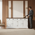Bufet Verona Collection, Transilvan, 3 Usi, 5 Sertare, MDF si Lemn Masiv, 180x50x90 cm, Alb si Stejar Natur