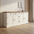 Bufetul este realizat din MDF și lemn masiv (brad și tei), iar blatul este din lemn de tei cu finisaj patinat Fleur.