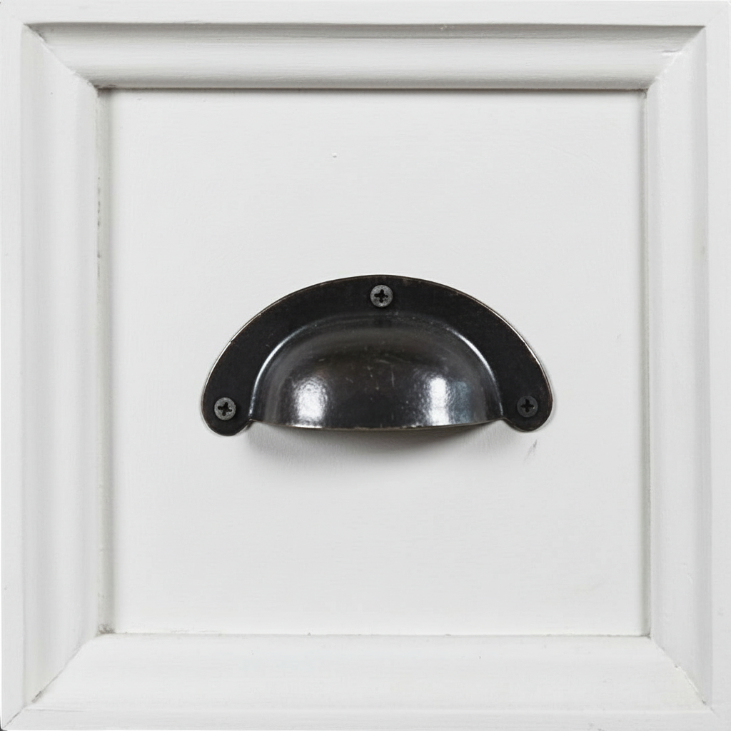 Detaliile decorative, precum mânerele metalice tip scoică cu aspect vintage și fronturile bine definite, completează un design atemporal, potrivit atât pentru interioare moderne, cât și clasice.