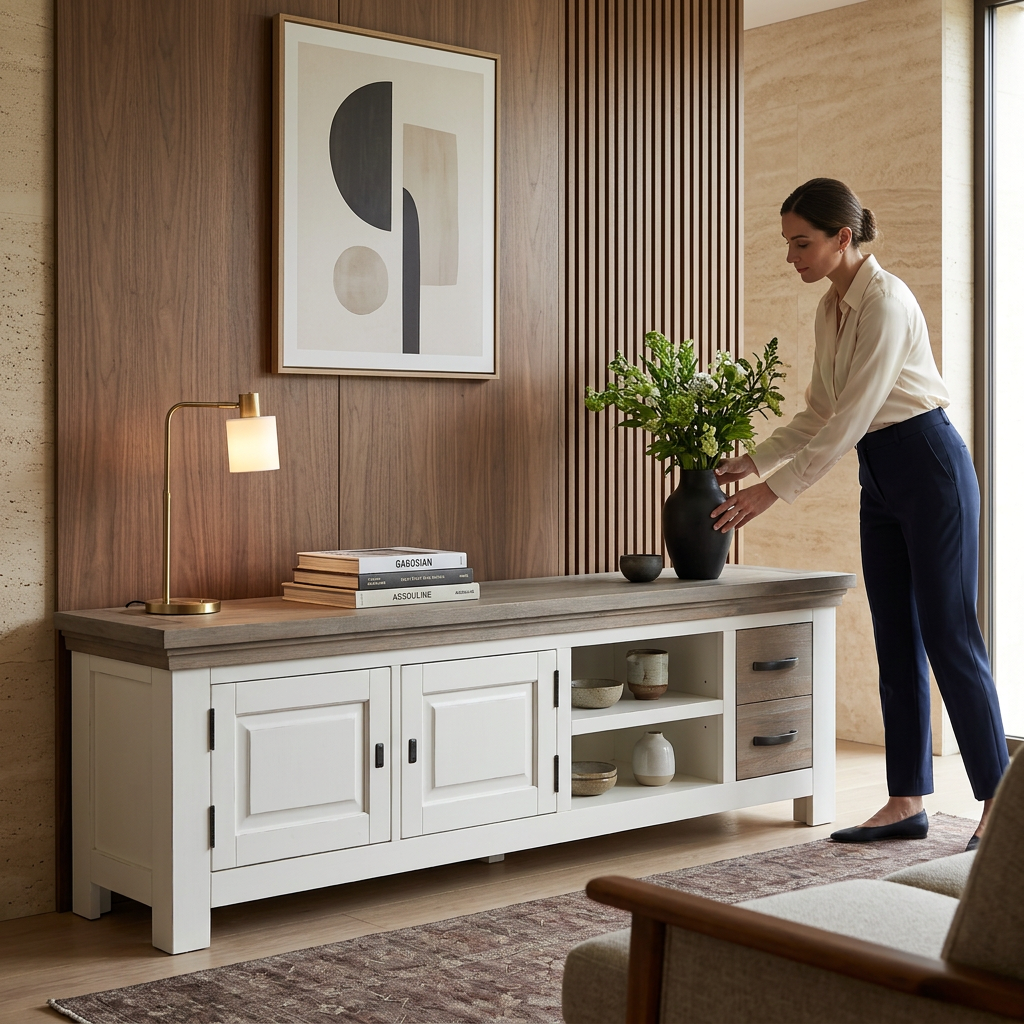 Liniile curate și designul bine definit transformă această comodă într-o piesă centrală a livingului.