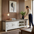 Corpul alb creează un efect luminos și aerisit, în timp ce blatul din lemn masiv de stejar natur adaugă profunzime și autenticitate. Contrastul dintre aceste elemente conferă un aspect premium, potrivit pentru interioare elegante.