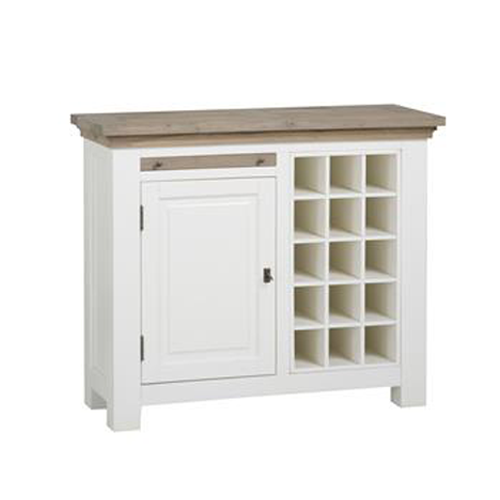 Comoda Vin, Verona Collection, Transilvan, 1 Sertar, Raft pentru 15 Sticle, MDF si Lemn Masiv, 104x40x90 cm, Alb si Stejar Natur