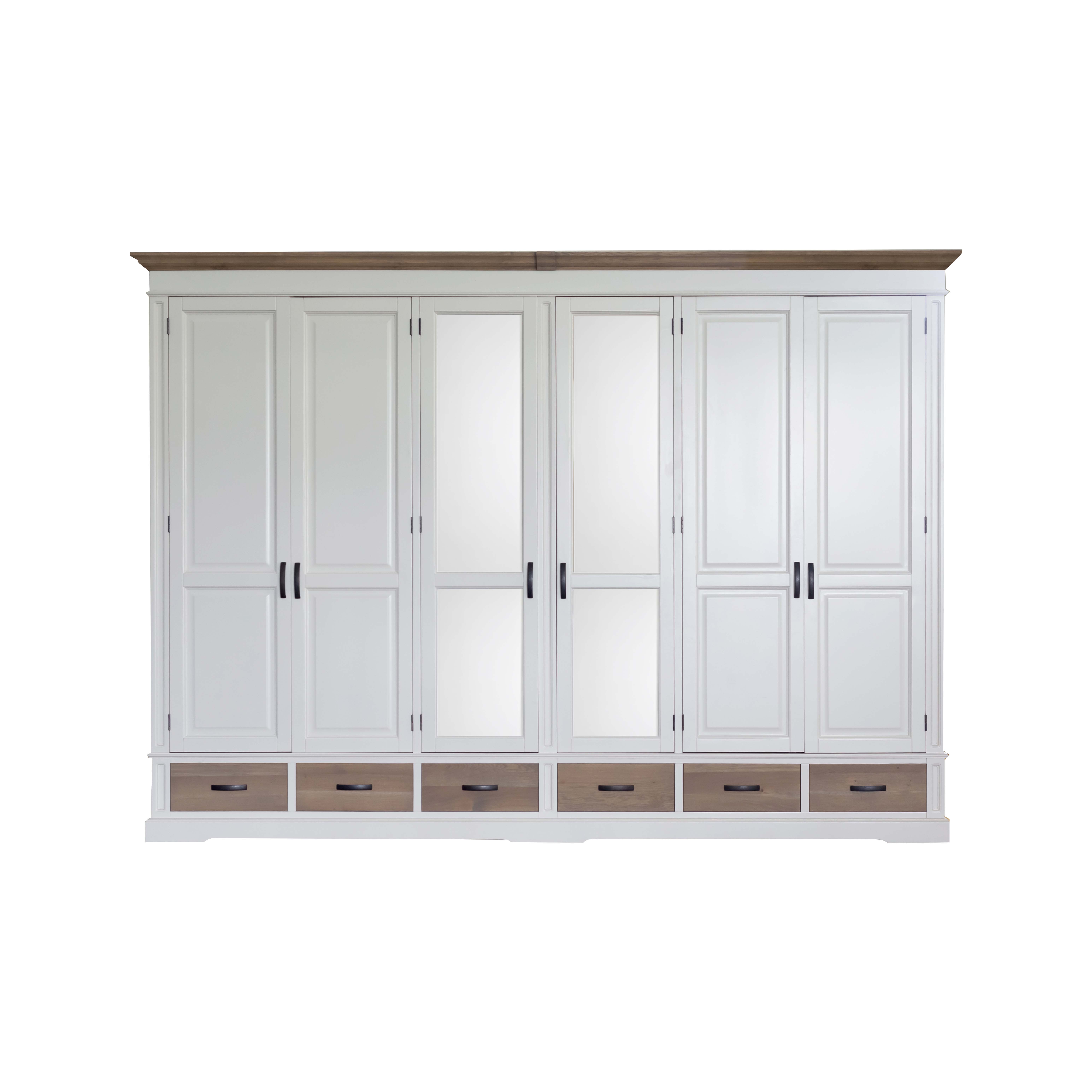 Dulap Milano Collection, Transilvan, 6 Usi, 6 Sertare, MDF si Lemn Masiv, 315x61x220 cm, Alb si Stejar Natur