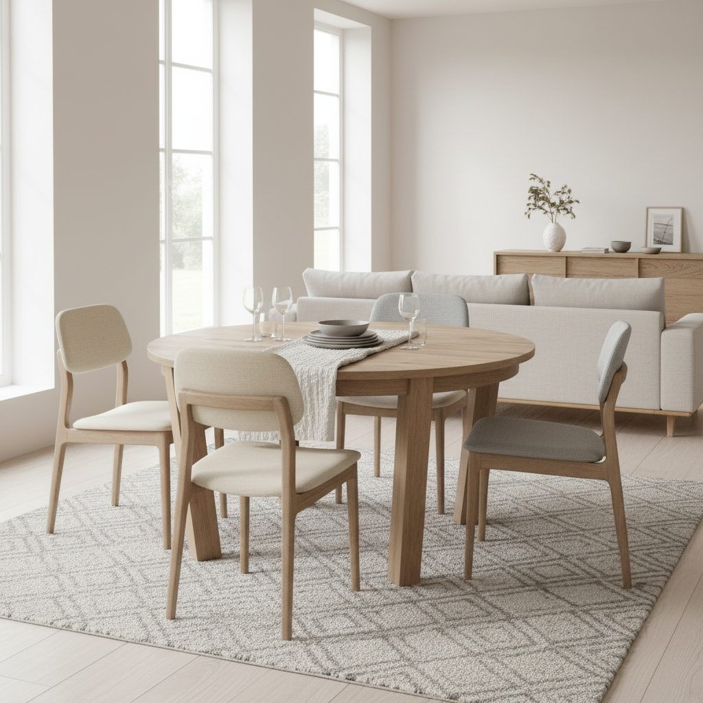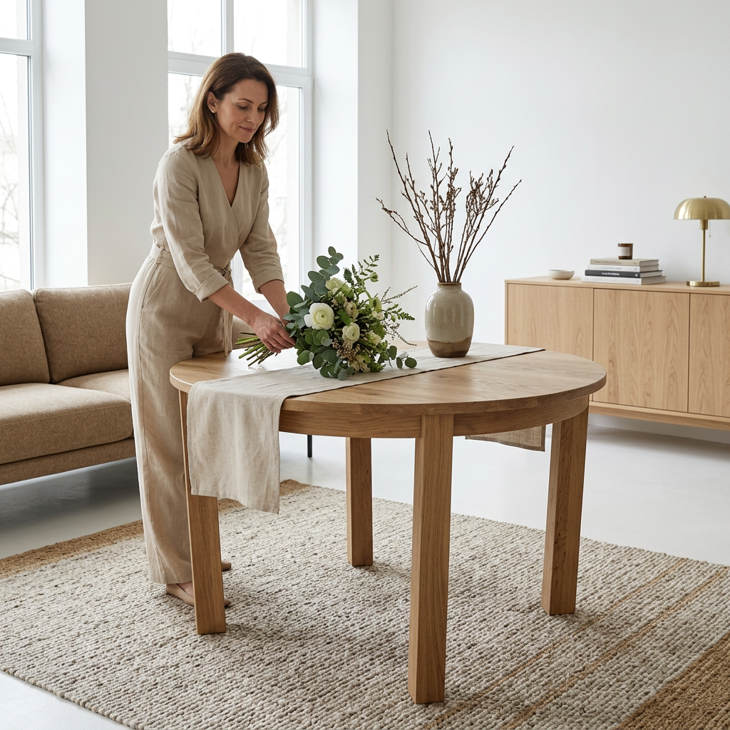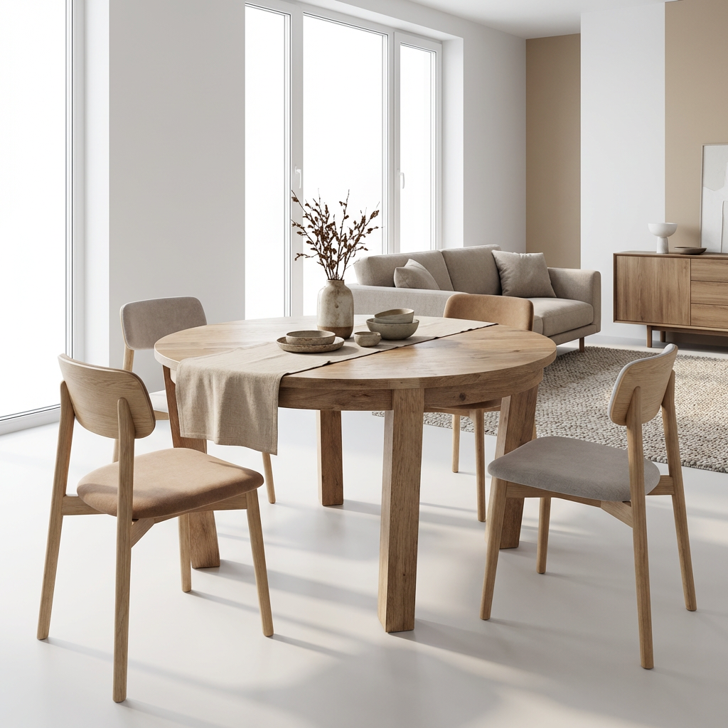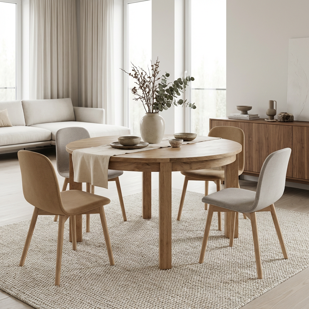 Masă de dining rotundă – design natural, eleganță și confort în utilizare