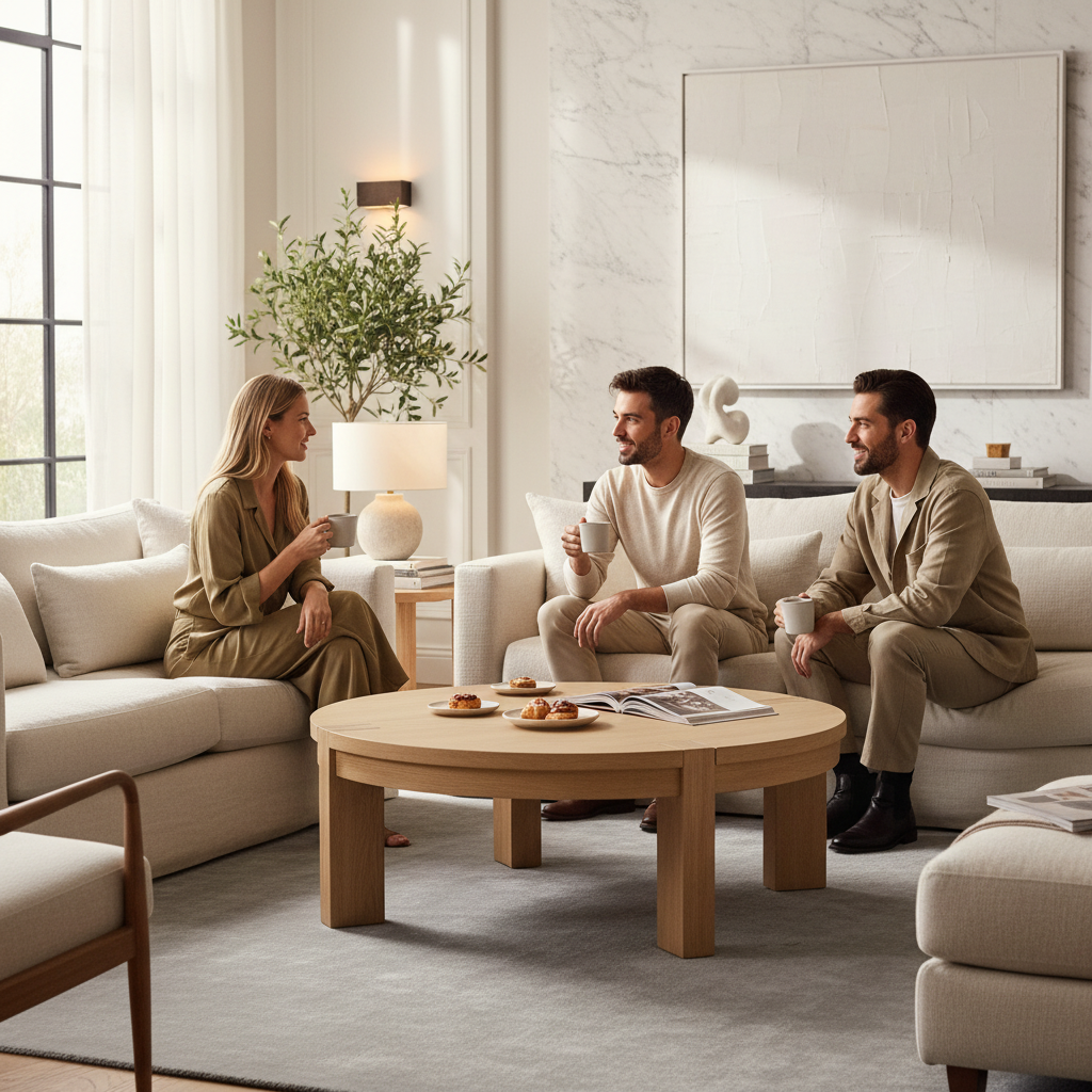 Măsuță de cafea rotundă – design artizanal, stabilitate și eleganță naturală