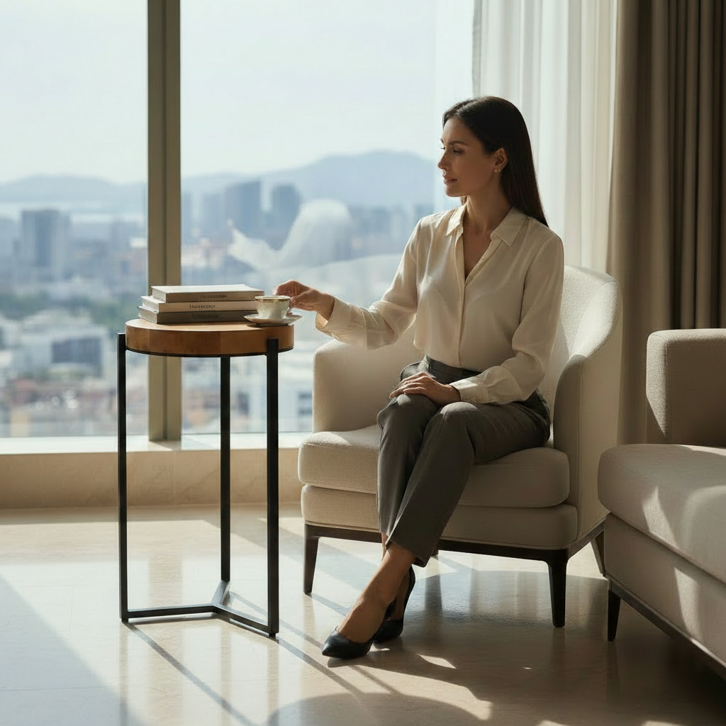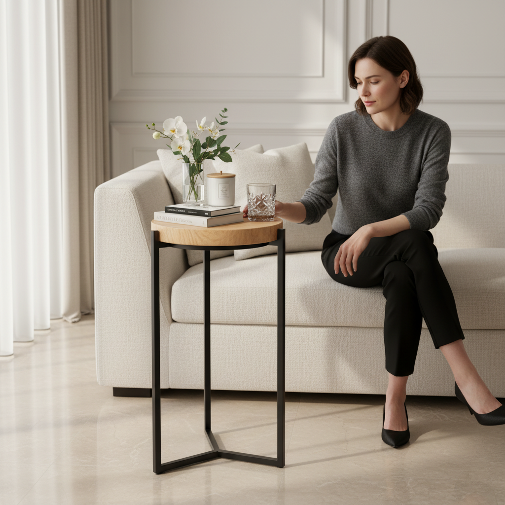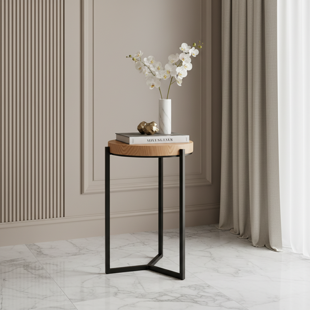 Măsuță decorativă compactă – design industrial-modern, eleganță minimalistă și funcționalitate practică