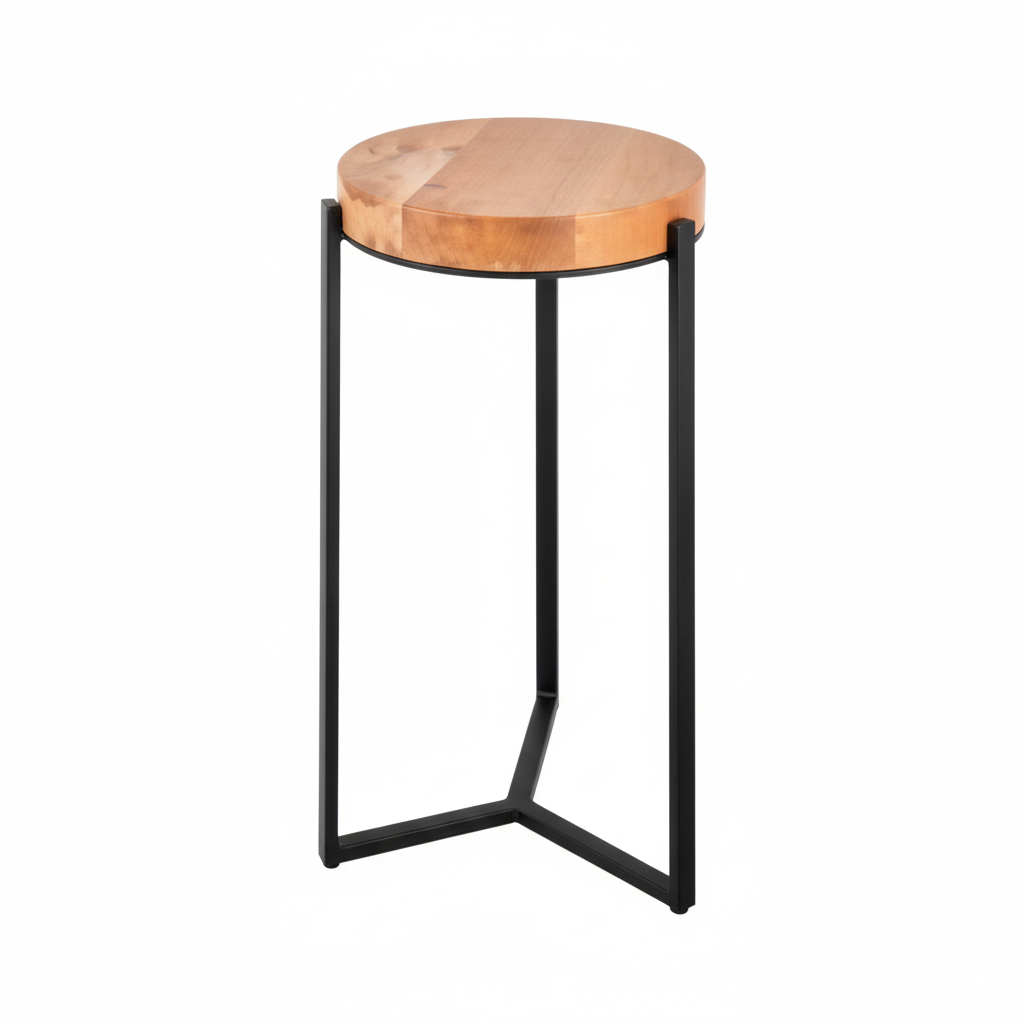Masuta Laterala Rotunda, New York Collection, Transilvan, Lemn Masiv Stejar, 3 Picioare Metalice, 30x30x55 cm, Stejar Natur si Negru