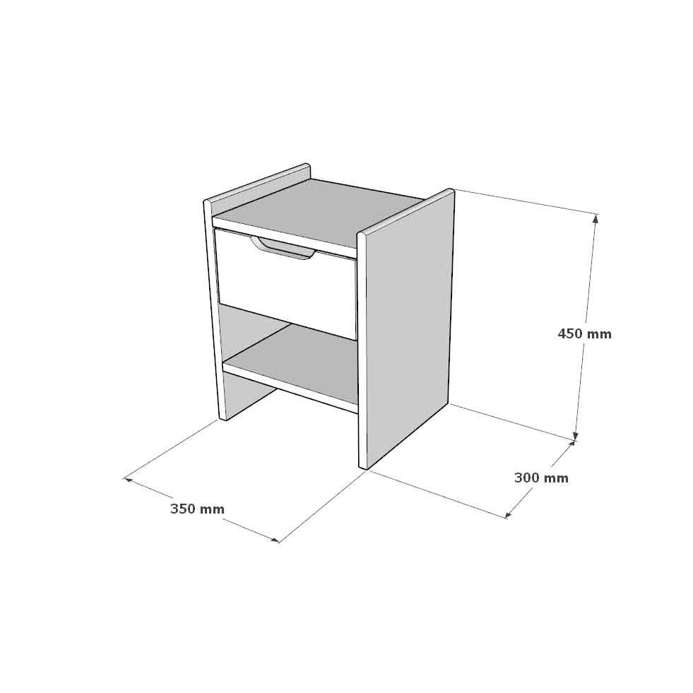 Cu dimensiunile sale de 45x35x30 cm, noptiera Luna este suficient de compactă pentru a se potrivi în orice dormitor, fără a ocupa prea mult spațiu. Proporțiile sale sunt gândite pentru a se integra perfect lângă pat, oferind atât funcționalitate, cât și stil.
