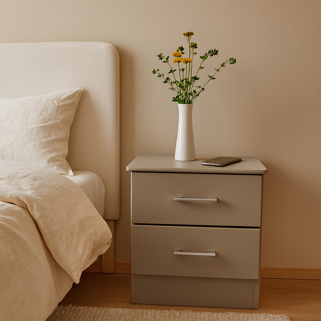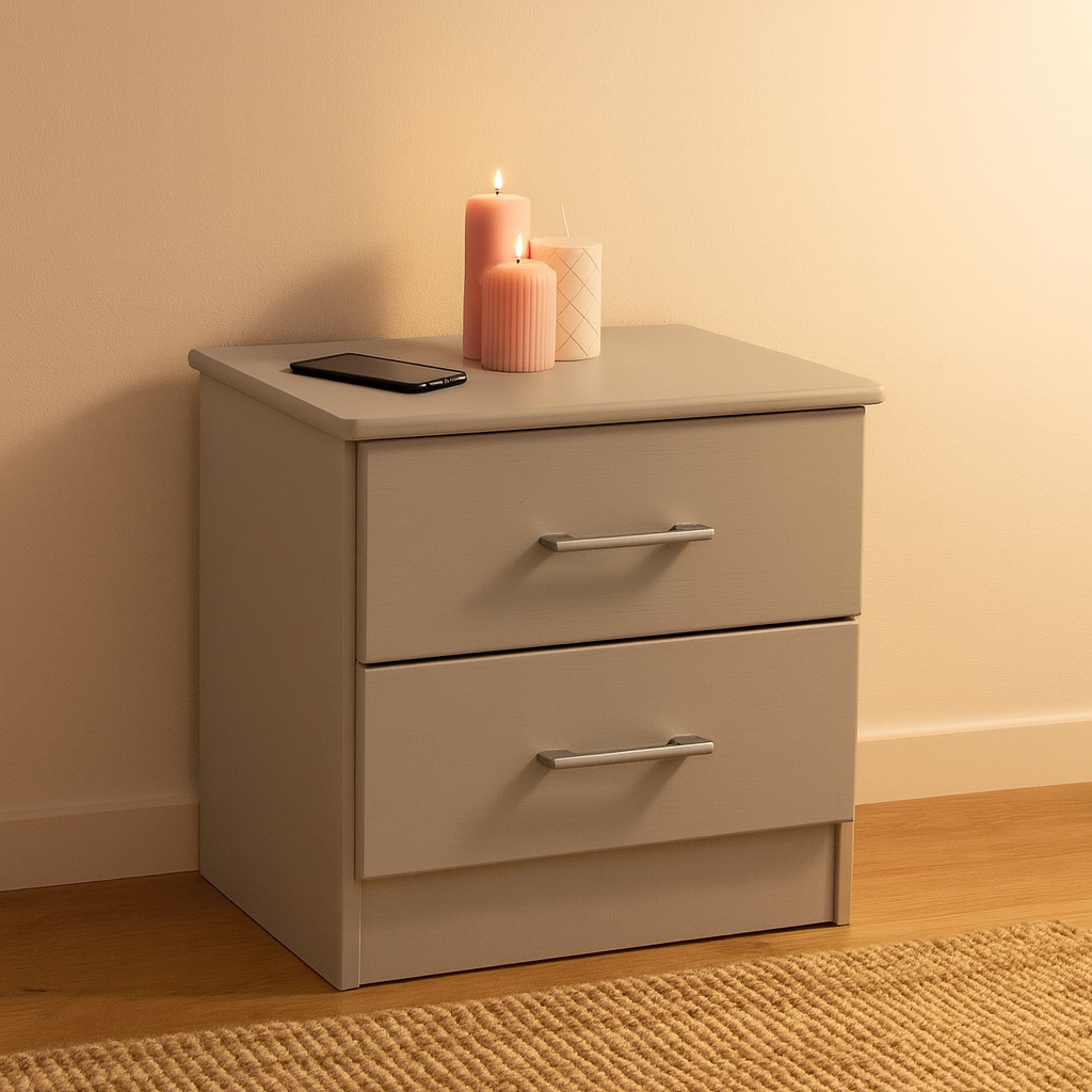 Cu două sertare de depozitare, fiecare cu o capacitate de 5 kg, noptiera Moonlight este ideală pentru a menține lucrurile organizate în dormitor. Puteți depozita cu ușurință obiecte esențiale, având totul la îndemână fără a compromite ordinea și estetica camerei.