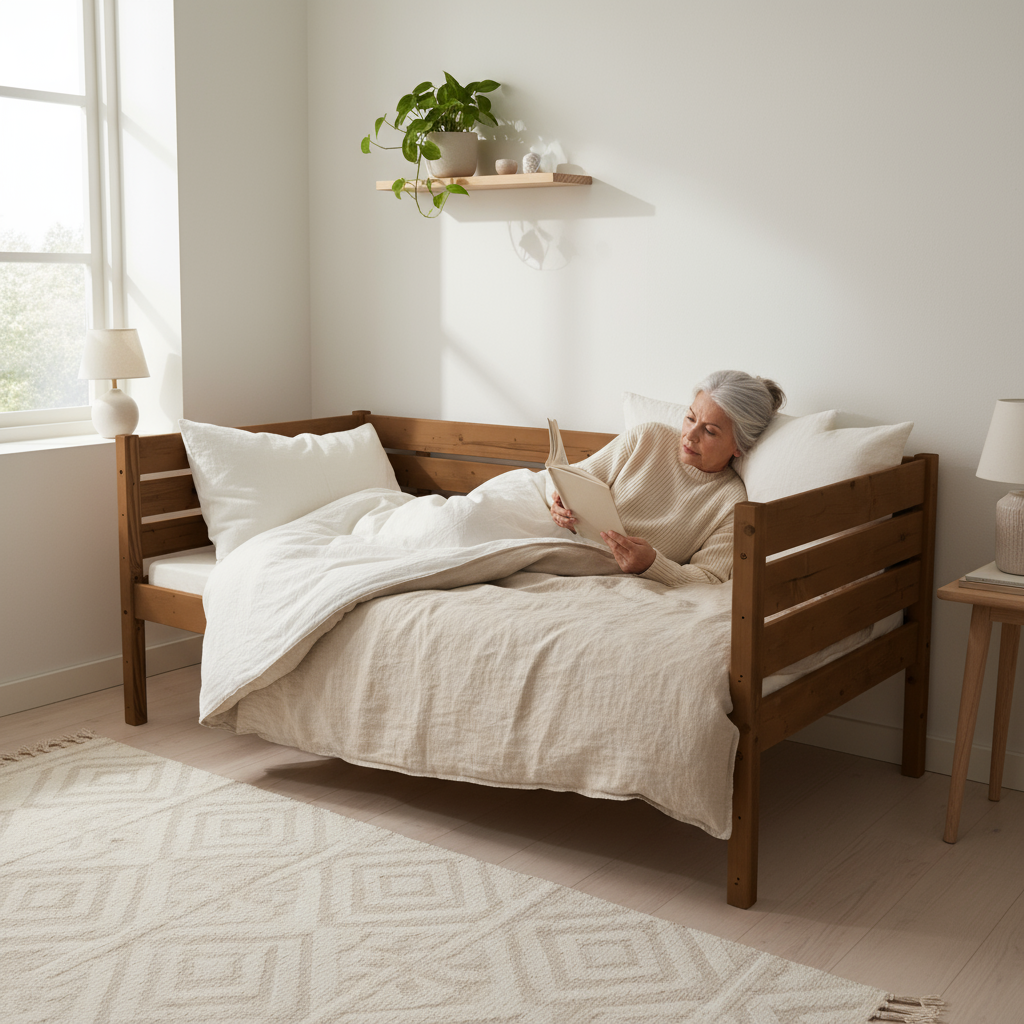 Indiferent dacă este destinat tinerilor, adulților sau persoanele în vărstă, acest pat este potrivit pentru oricine dorește să se bucure de confortul și calitatea oferite de lemnul masiv. Dimensiunea sa standard de 90x200 cm îl face ideal pentru a se potrivi în orice spațiu de dormit.