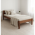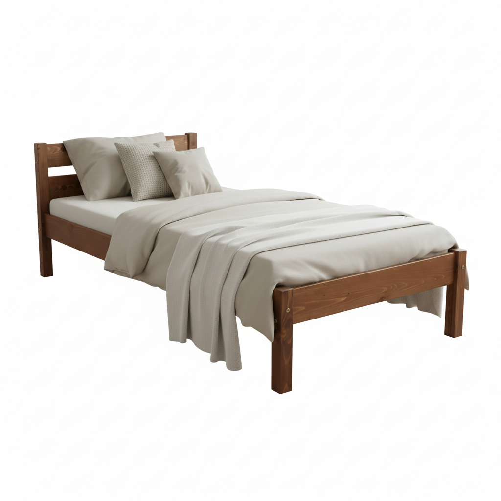 Patul de o persoană în culoarea nucului adaugă o notă de eleganță și sofisticare, transformând orice dormitor într-un refugiu confortabil.