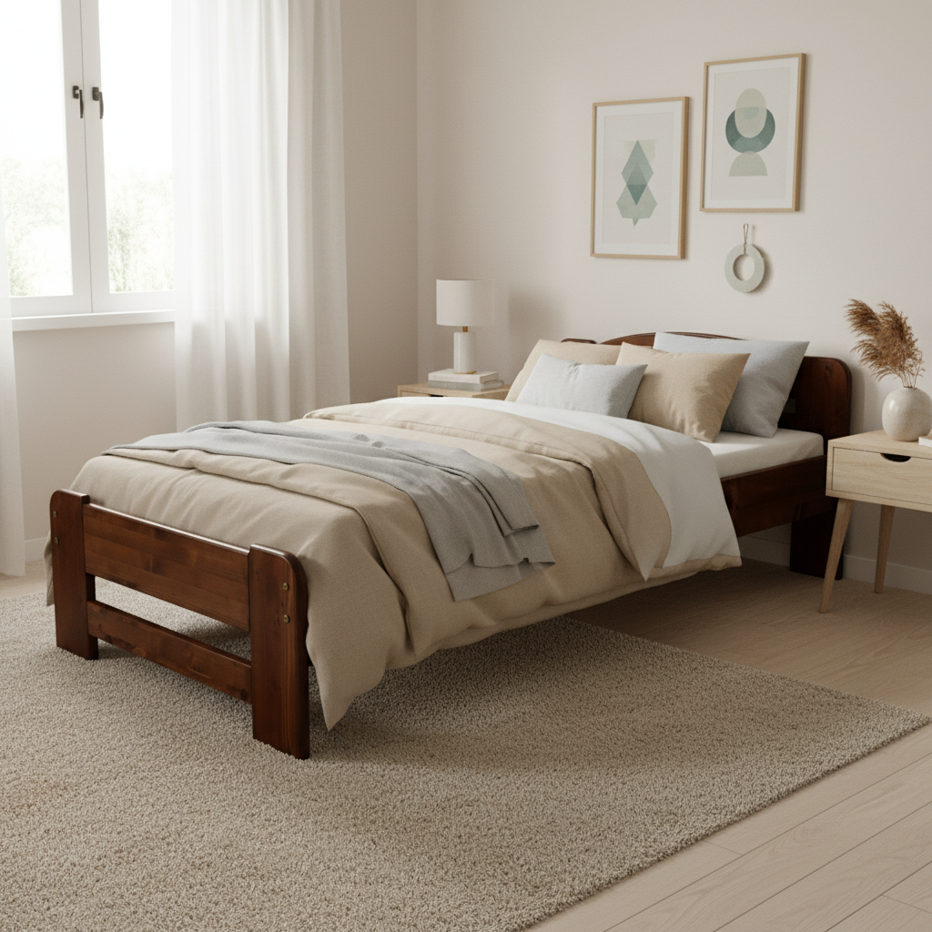 Acest model se evidențiază prin structura sa 2/1, având două scânduri la tăblia din cap și o scândură la tăblia din picioare. Tăblia cap, cu o înălțime de 58 cm, oferă sprijin confortabil și completează designul armonios, în timp ce tăblia de la picioare, cu o înălțime de 40 cm, menține o linie discretă. Înălțimea șezutului este de 40 cm, ideală pentru confortul zilnic.