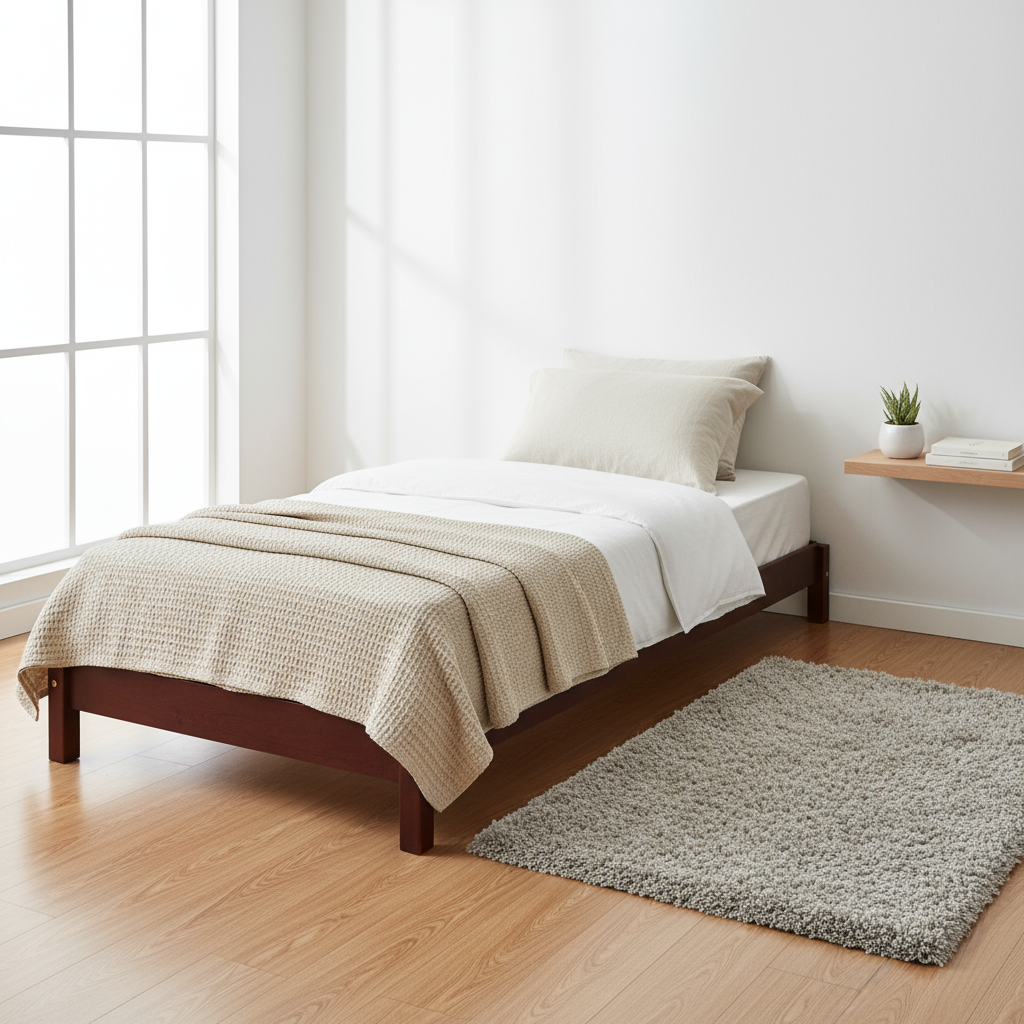Somiera este inclusă, oferind un suport stabil, se potrivește perfect cu o saltea de dimensiune 90x200 cm.