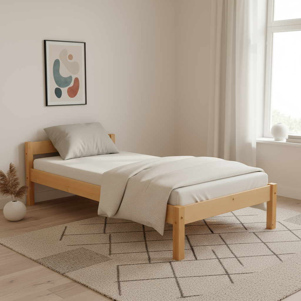 Patul are dimensiuni de 90x200 cm, ceea ce îl face ideal pentru o persoană. Cu un spațiu suficient pentru o odihnă confortabilă, patul este o alegere practică și compactă pentru orice tip de încăpere.