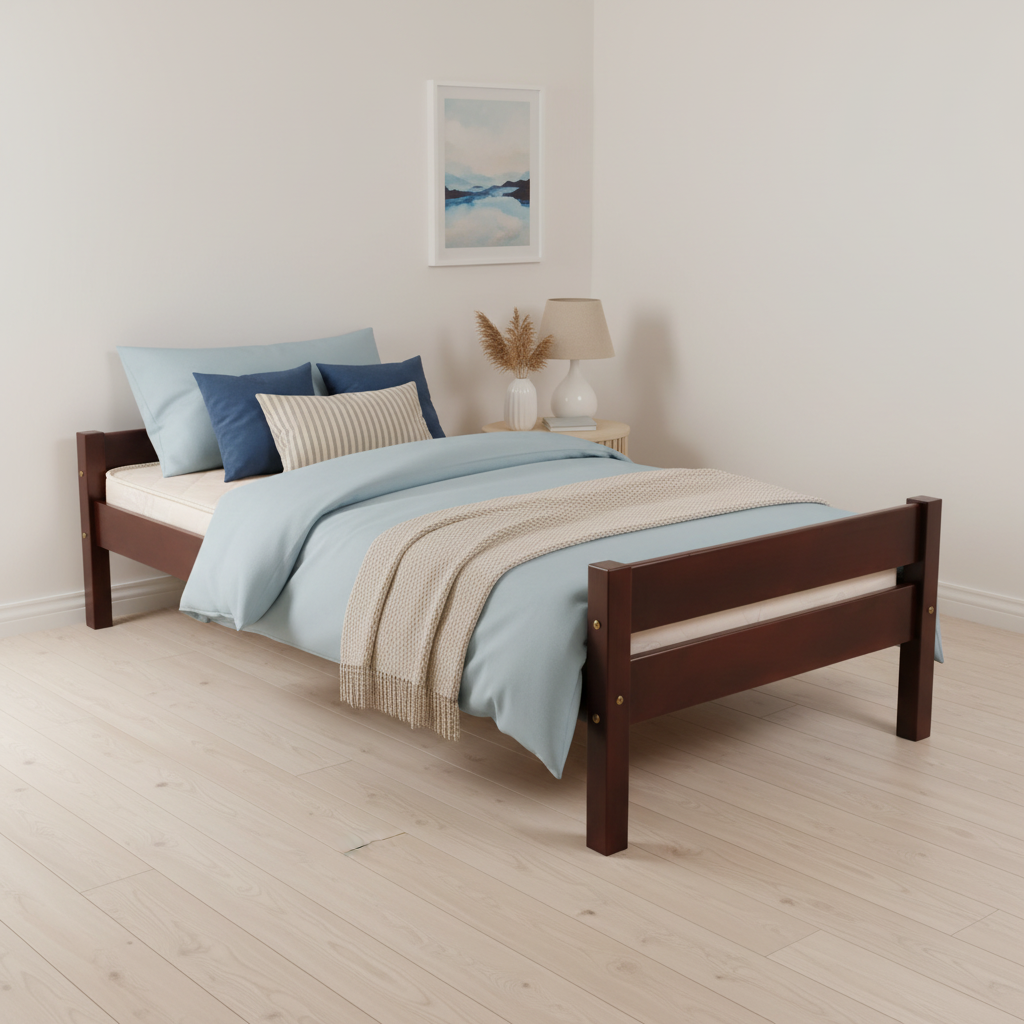 Pat de o persoana Transilvan, Sally, Lemn Masiv, Model 3/1, 90x200 cm, Cappuccino