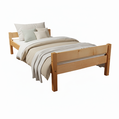 Patul este realizat din lemn masiv de molid 100%, certificat FSC, garantând durabilitatea și respectul pentru mediul înconjurător. Acest material de înaltă calitate asigură o rezistență de lungă durată și o stabilitate excelentă, făcând din acest pat o investiție pe termen lung.