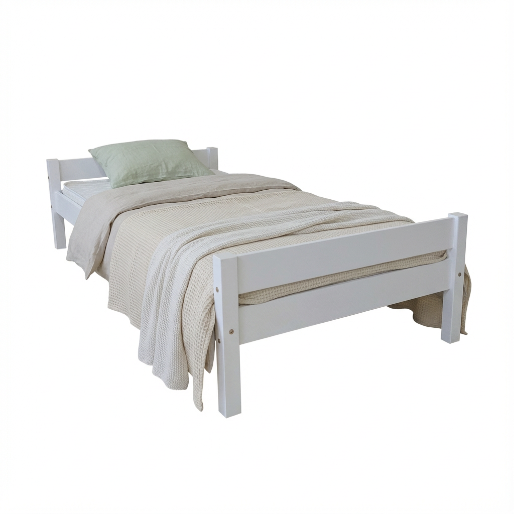 Pat de o persoana Transilvan, Sally, Lemn Masiv, Model 2/2, 90x200 cm, Alb