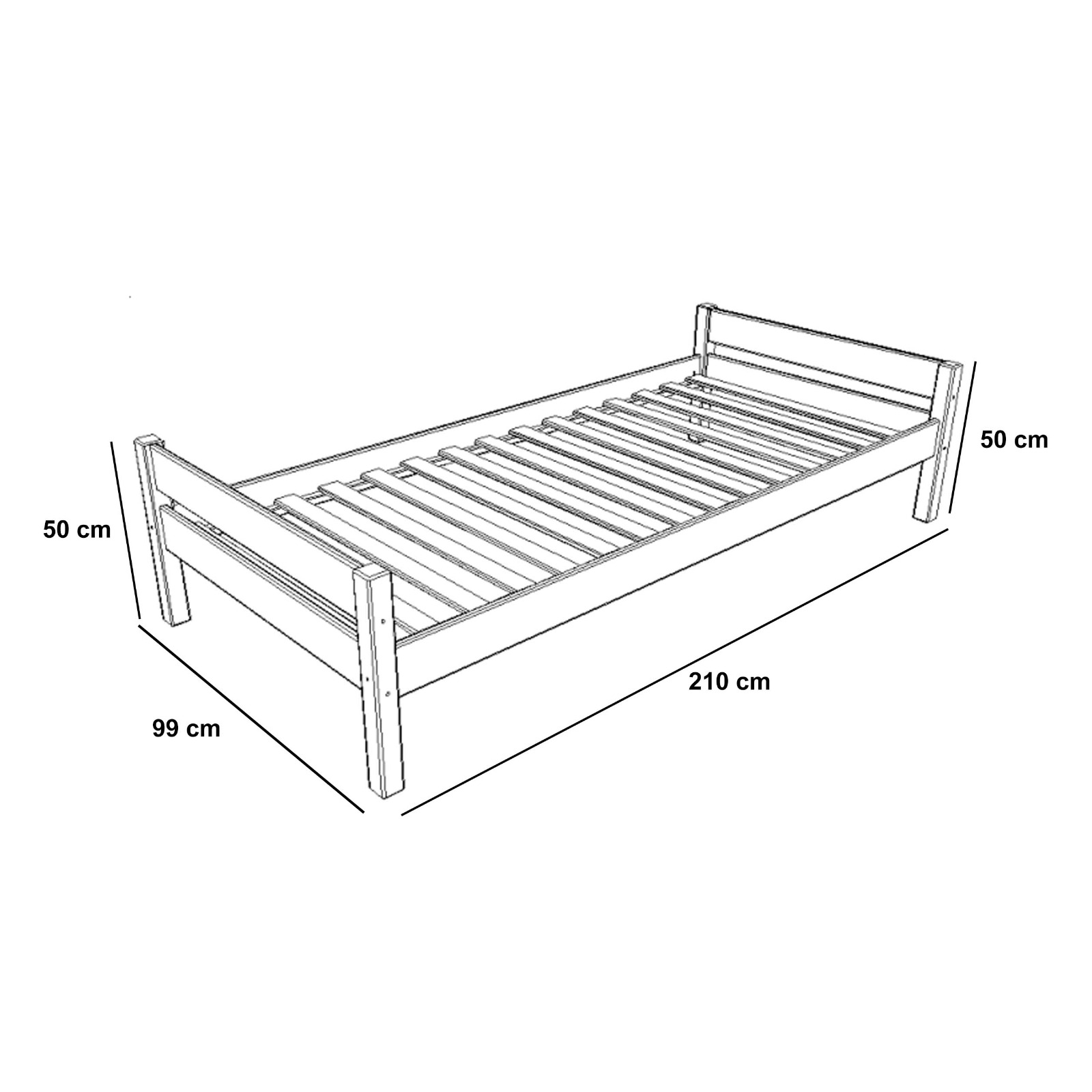 Patul are dimensiuni de 90x200 cm, ceea ce îl face ideal pentru o persoană. Cu un spațiu suficient pentru o odihnă confortabilă, patul este o alegere practică și compactă pentru orice tip de încăpere.