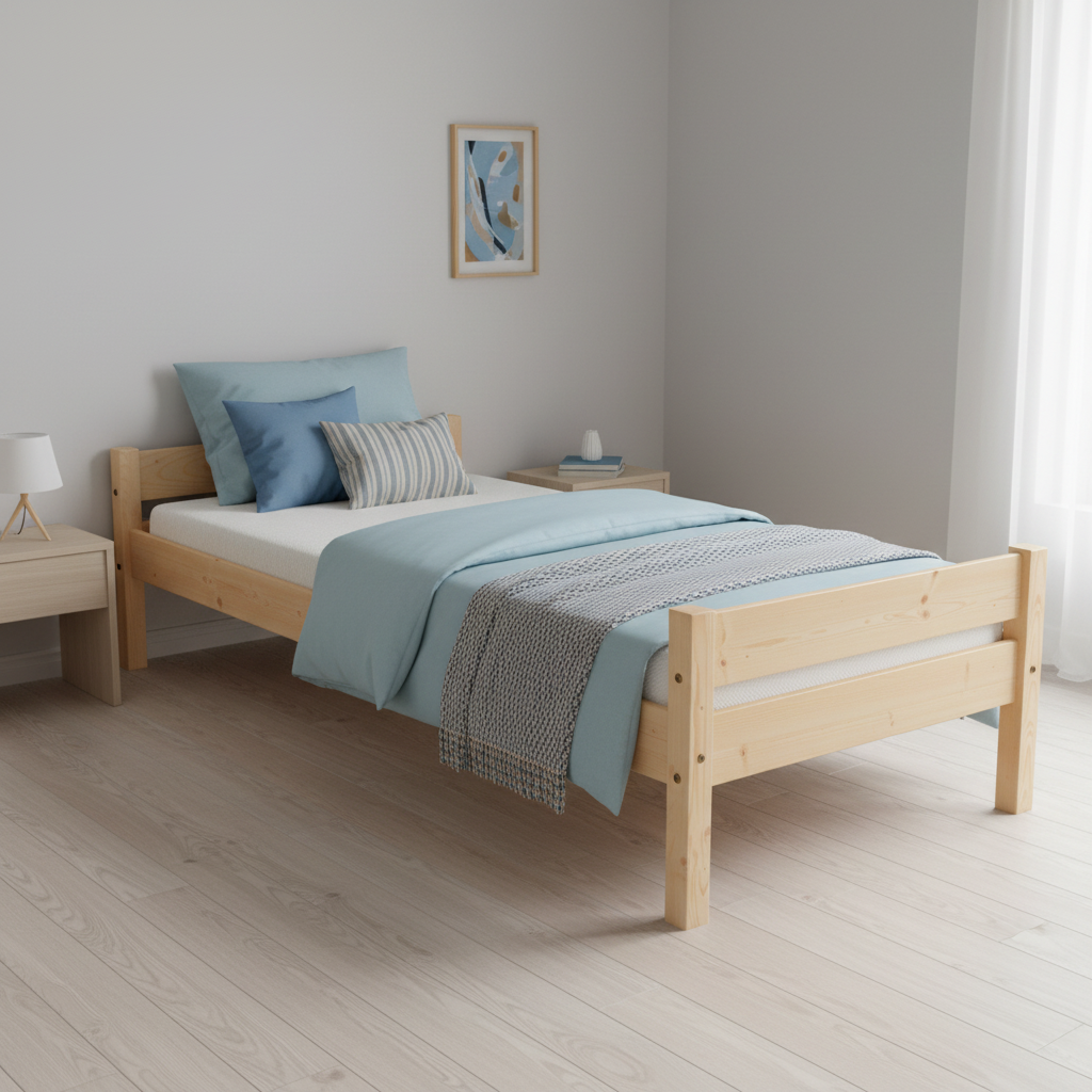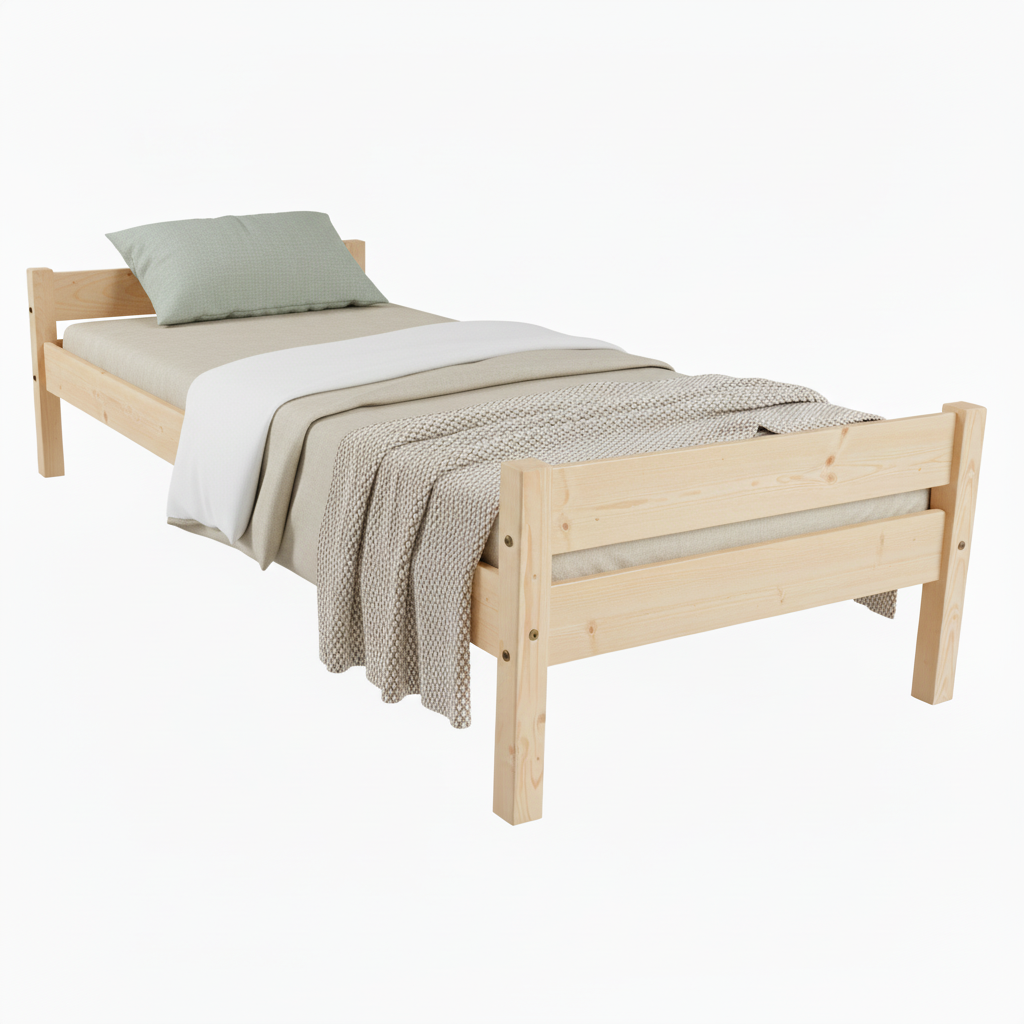 Patul este realizat din lemn masiv de molid 100%, certificat FSC, garantând durabilitatea și respectul pentru mediul înconjurător. Acest material de înaltă calitate asigură o rezistență de lungă durată și o stabilitate excelentă, făcând din acest pat o investiție pe termen lung.
