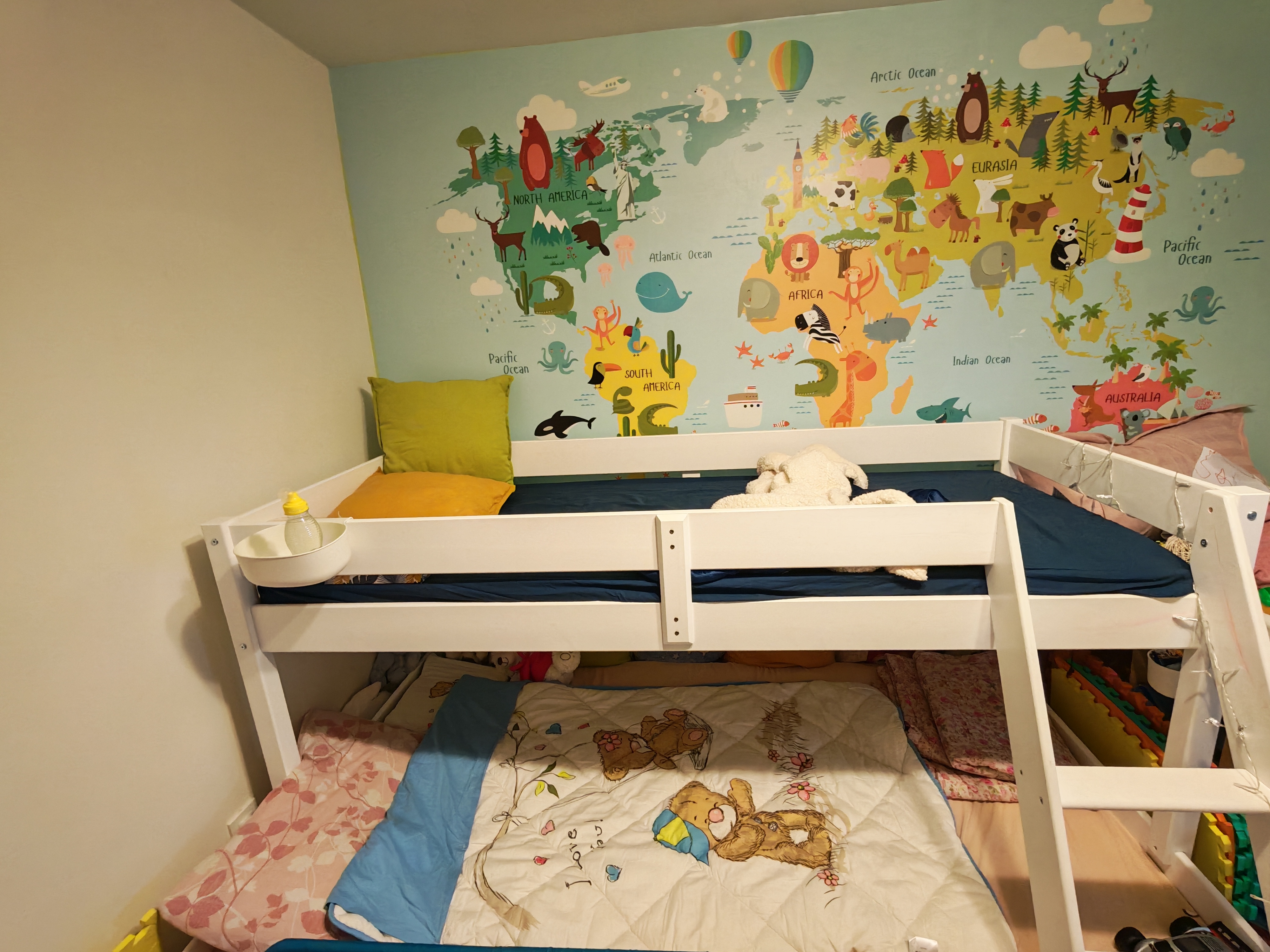 Economie de spațiu și versatilitate: Cu un design inteligent de paturi suprapuse, acest pat economisește spațiu valoros în orice cameră, fiind ideal pentru familiile cu doi copii.