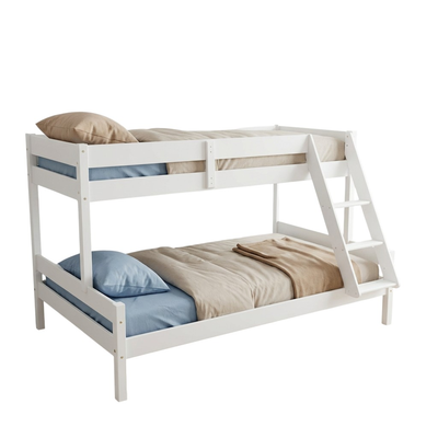 Cu bucurie și entuziasm vă prezentăm patul etajat Sandra pentru familiile unite. Acest pat etajat îmbină cu armonie confortul cu funcționalitatea, oferind un loc de visare pentru cei mici alături de părinții lor. Patul etajat din lemn masiv pentru 3 persoane este alegerea perfectă pentru familiile moderne în căutarea confortului, siguranței și eleganței.