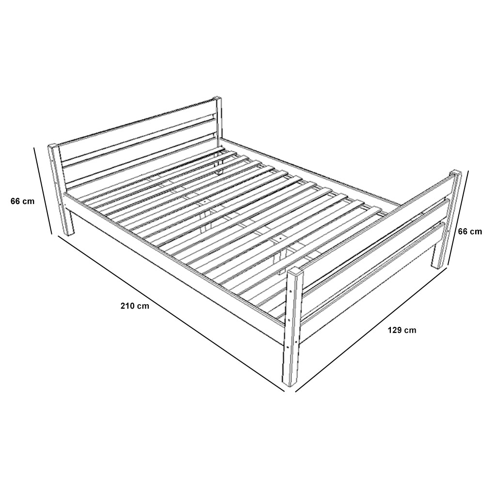 Designul patului include o tăblie de cap formată dint 3 scânduri, cu o înălțime de 66 cm și o tăblie de picioare formată din 3 scănduri, având o înălțime de 66 cm. Aceste detalii oferă un echilibru vizual și structural, asigurând atât confort cât și stabilitate. Înălțimea șezutului de 34 cm este optimă pentru o utilizare perfectă.