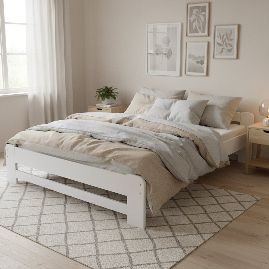 Coletul contine 1x pat, 1x somiera, feronerie