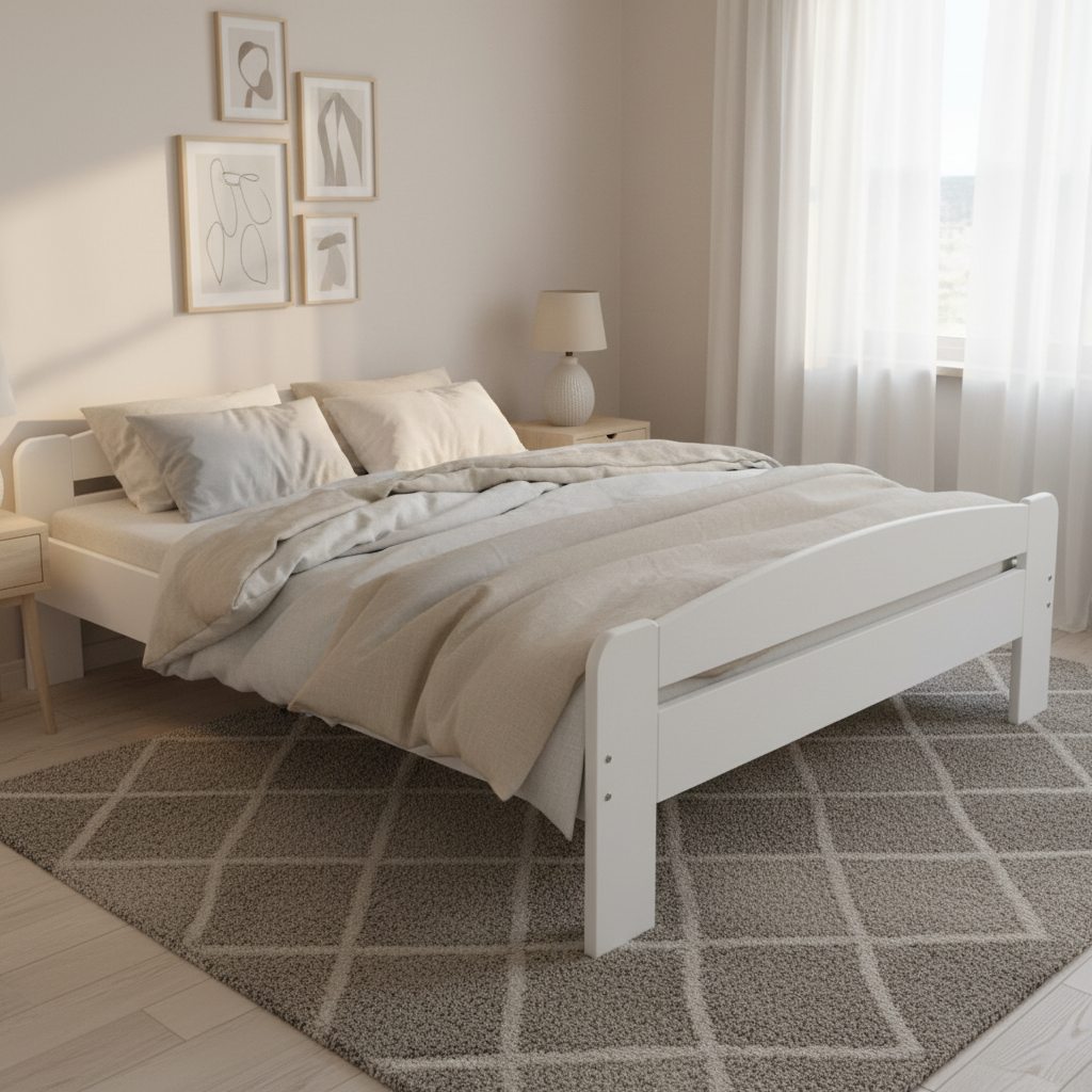 Acest produs fabricat in Romania, este realizat folosind lemn molid 100% certificat FSC. Este un pat confortabil in stil contemporan, care se potriveste cu o gama larga de stiluri de design interior. Arata fantastic intr-un cadru modern, vintage sau traditional.