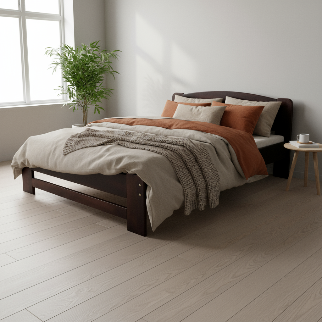 Acest model se evidențiază prin structura sa 3/1, având trei scânduri la tăblia din cap și o singură scândură la tăblia din picioare. Tăblia cap, cu o înălțime de 79 cm, oferă sprijin confortabil și completează designul armonios, în timp ce tăblia de la picioare, cu o înălțime de 40 cm, menține o linie discretă. Înălțimea șezutului este de 40 cm, ideală pentru confortul zilnic.