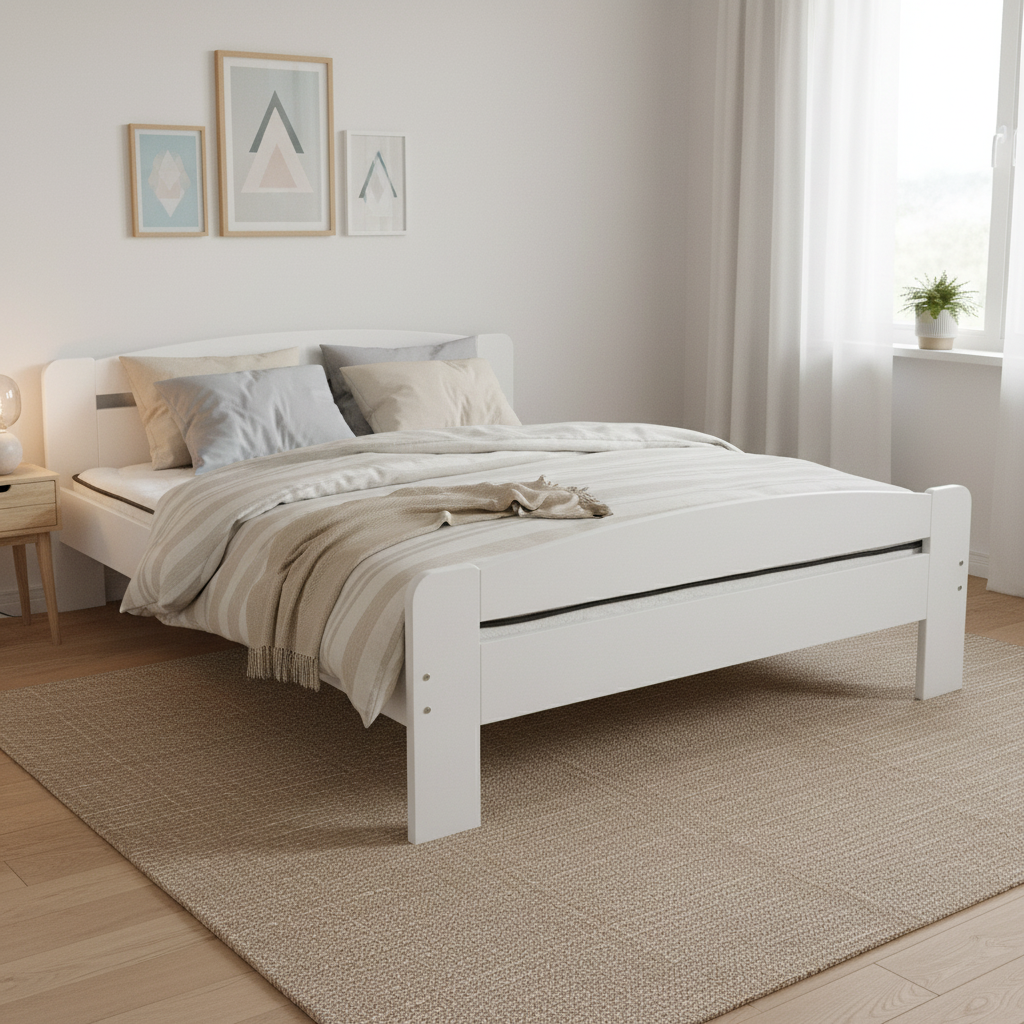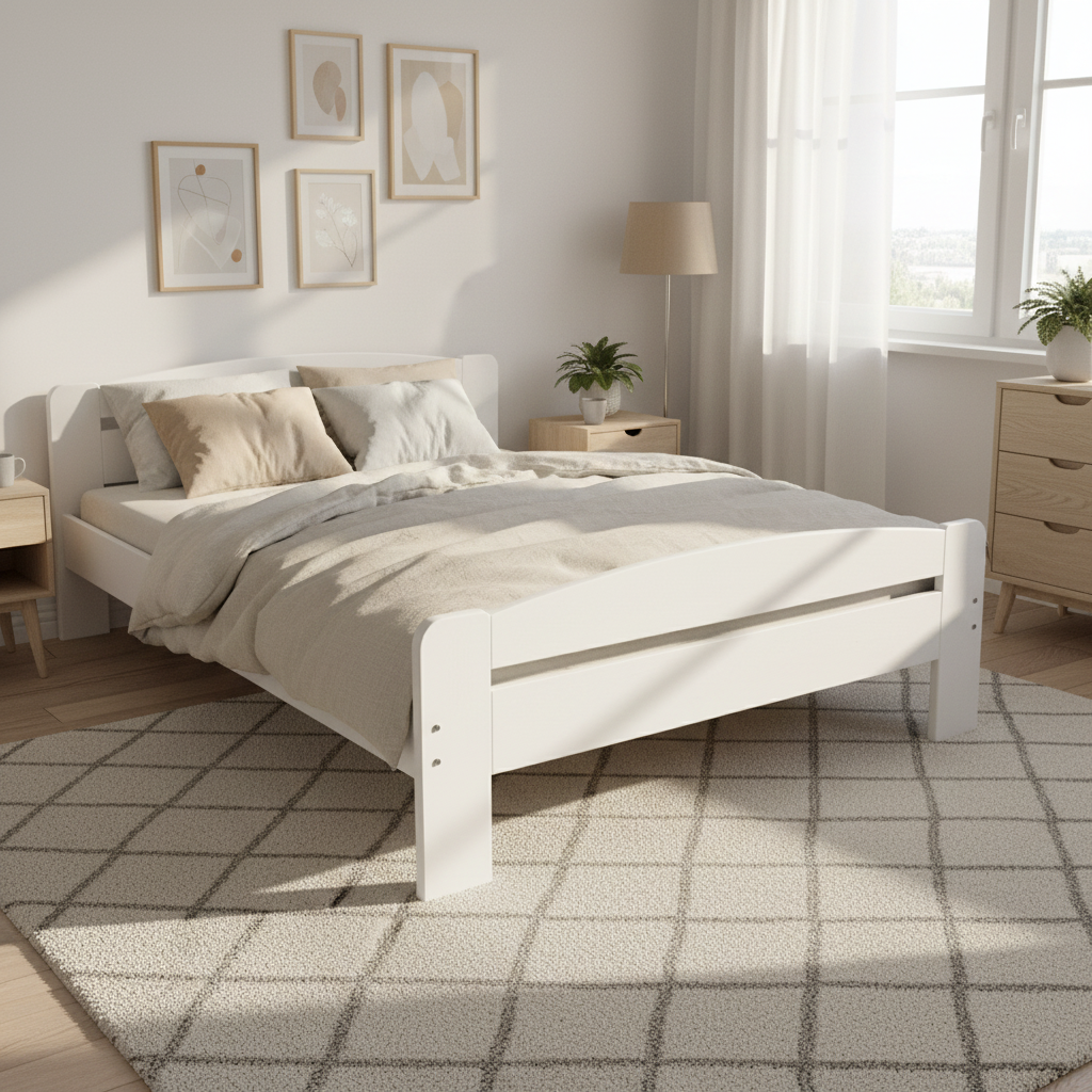 Acest produs fabricat in Romania, este realizat folosind lemn molid 100% certificat FSC. Este un pat confortabil in stil contemporan, care se potriveste cu o gama larga de stiluri de design interior. Arata fantastic intr-un cadru modern, vintage sau traditional.