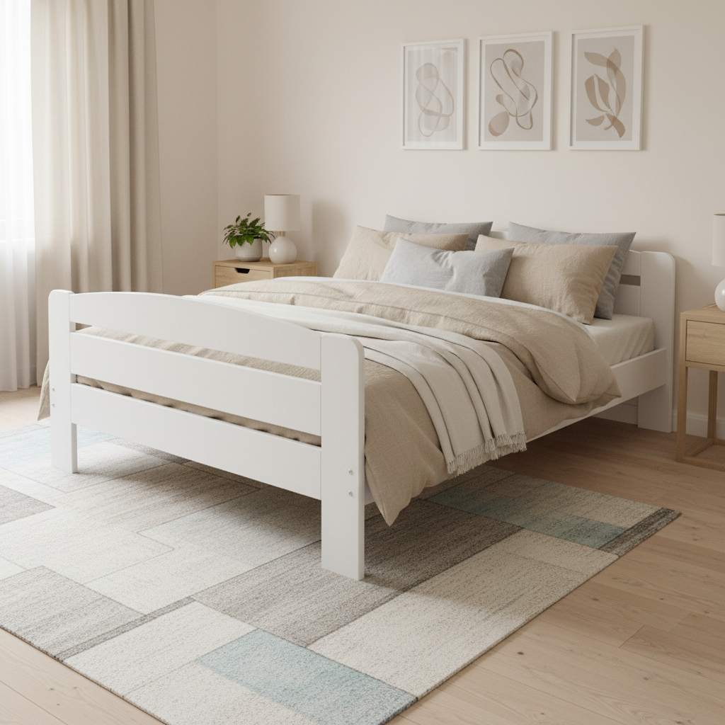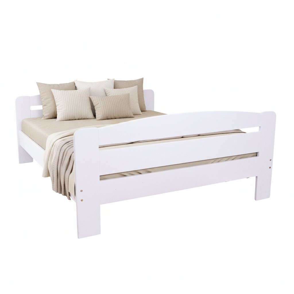Pat matrimonial Transilvan, Dumbo, Lemn Masiv, Model 3/3, 140x200 cm, Alb