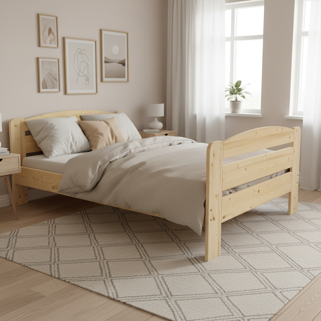 Acest produs fabricat in Romania, este realizat folosind lemn molid 100% certificat FSC. Este un pat confortabil in stil contemporan, care se potriveste cu o gama larga de stiluri de design interior. Arata fantastic intr-un cadru modern, vintage sau traditional.